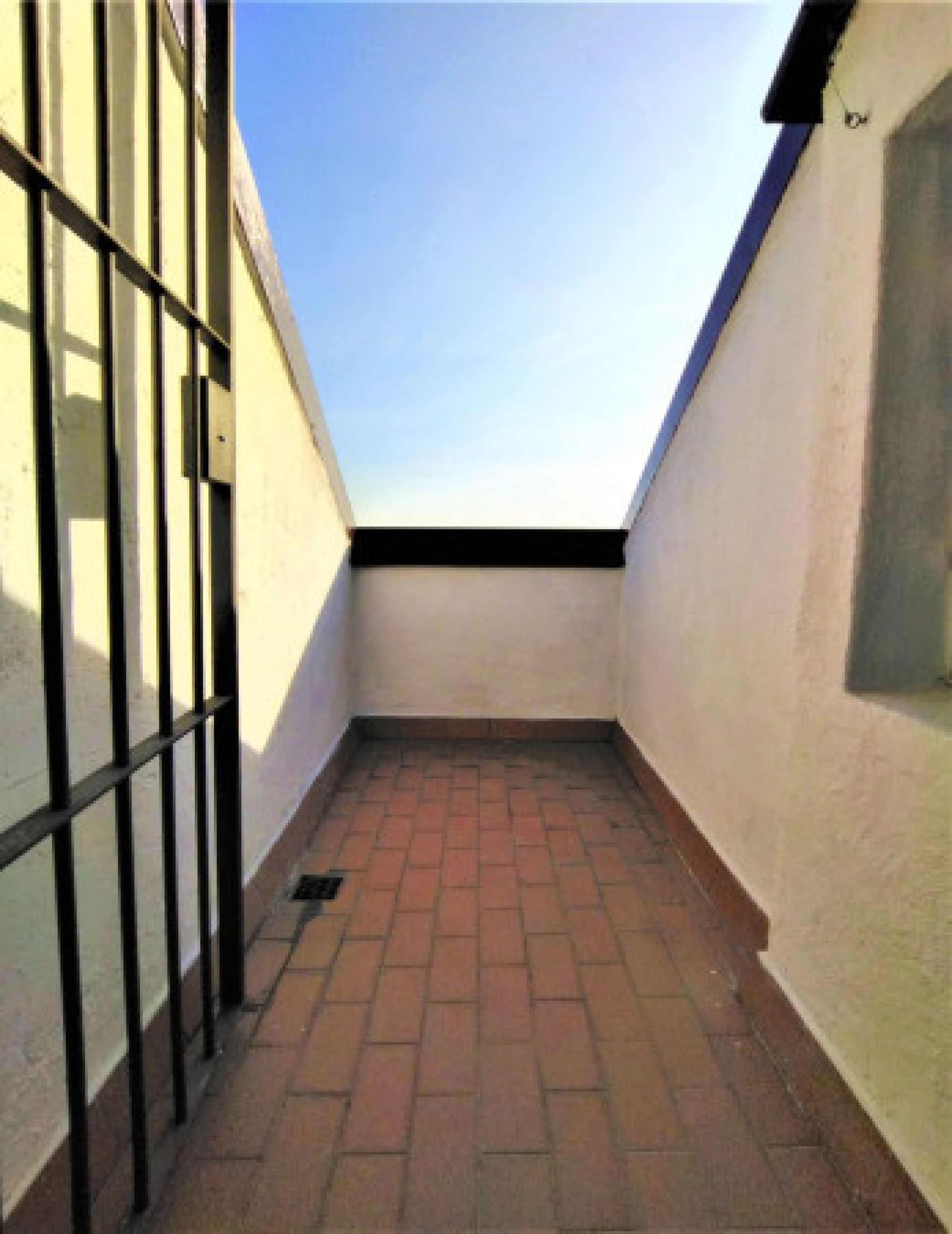 L'immobile è così composto: ingresso, bagno finestrato, camera da letto con uscita sul balcone, piccola area smart working, soggiorno con balcone e cucina oltre 2 piccoli ripostigli. La casa risulta già arredata e dotata di doppia esposizione che consente un ottima ventilazione di tutti gli ambienti e molta luminosità in quanto si trova al nono e ultimo piano con ascensore.