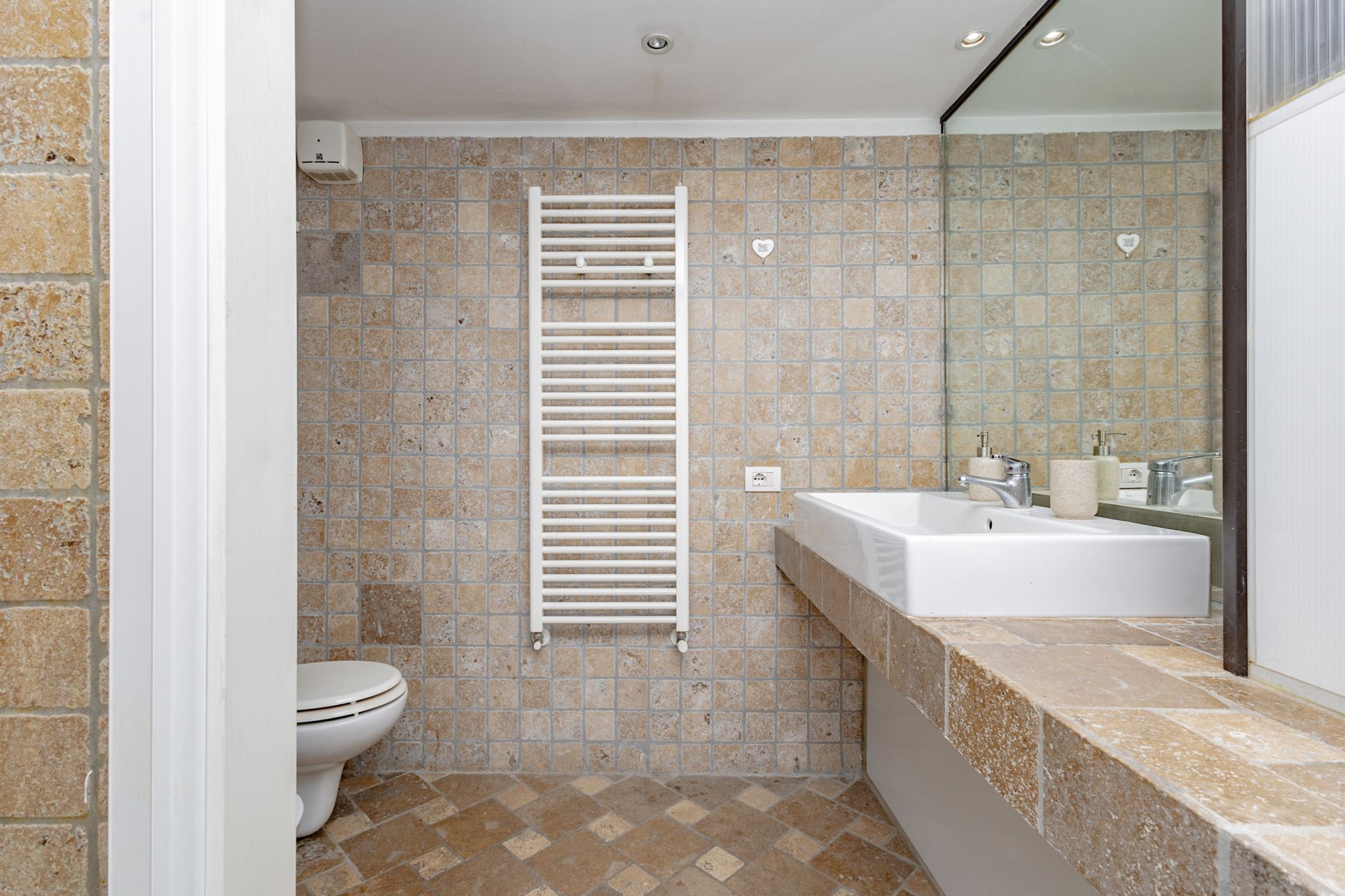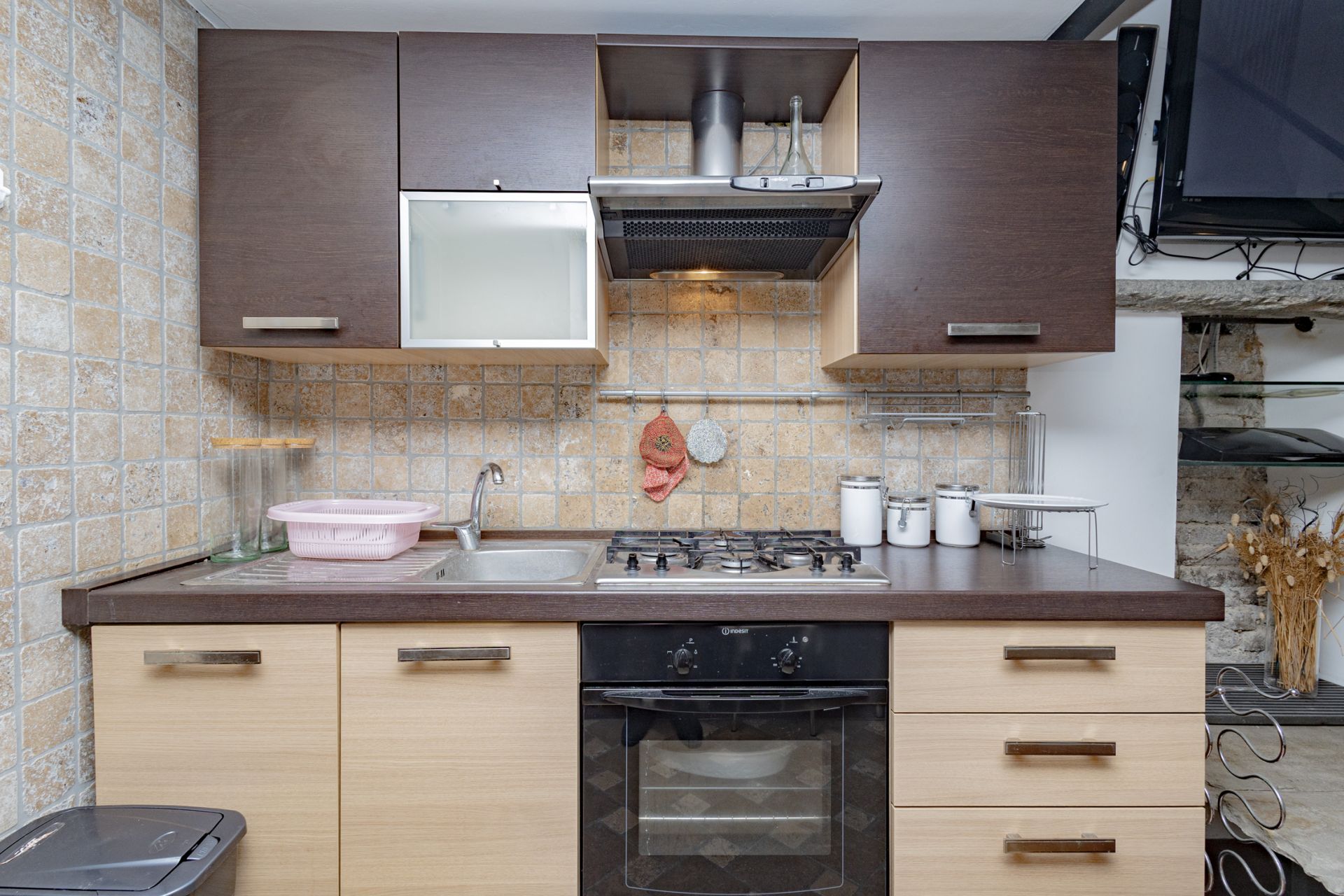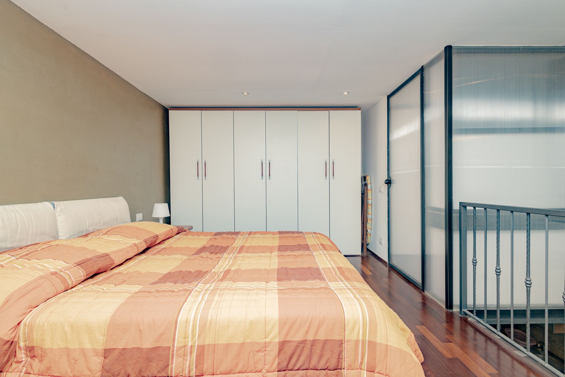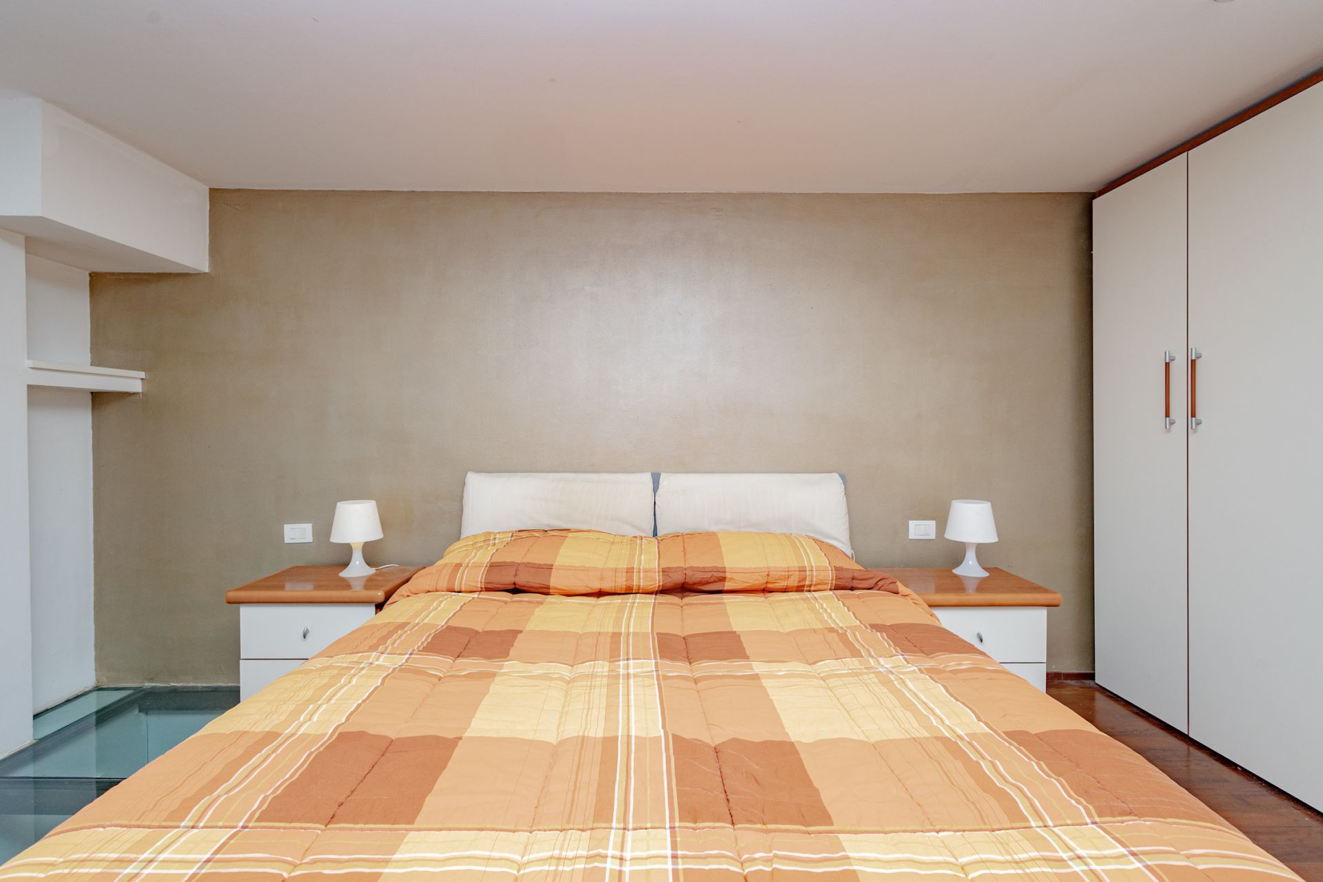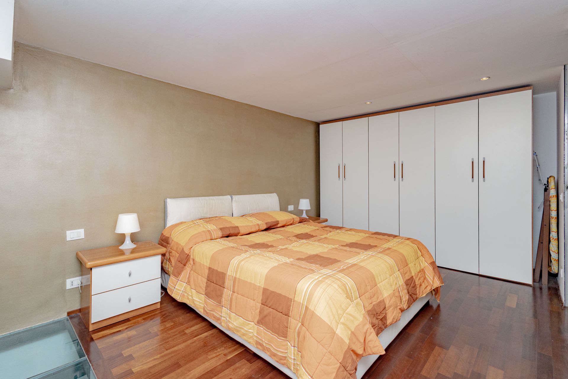 L’ingresso si apre sull’ampio soggiorno con cucina a vista, completamente attrezzata con piano cottura a gas e lavastoviglie. Una scala interna conduce al soppalco, dove sono collocati la camera matrimoniale e il bagno, pensati per sfruttare al meglio l’altezza degli ambienti e creare un’atmosfera intima e caratteristica.