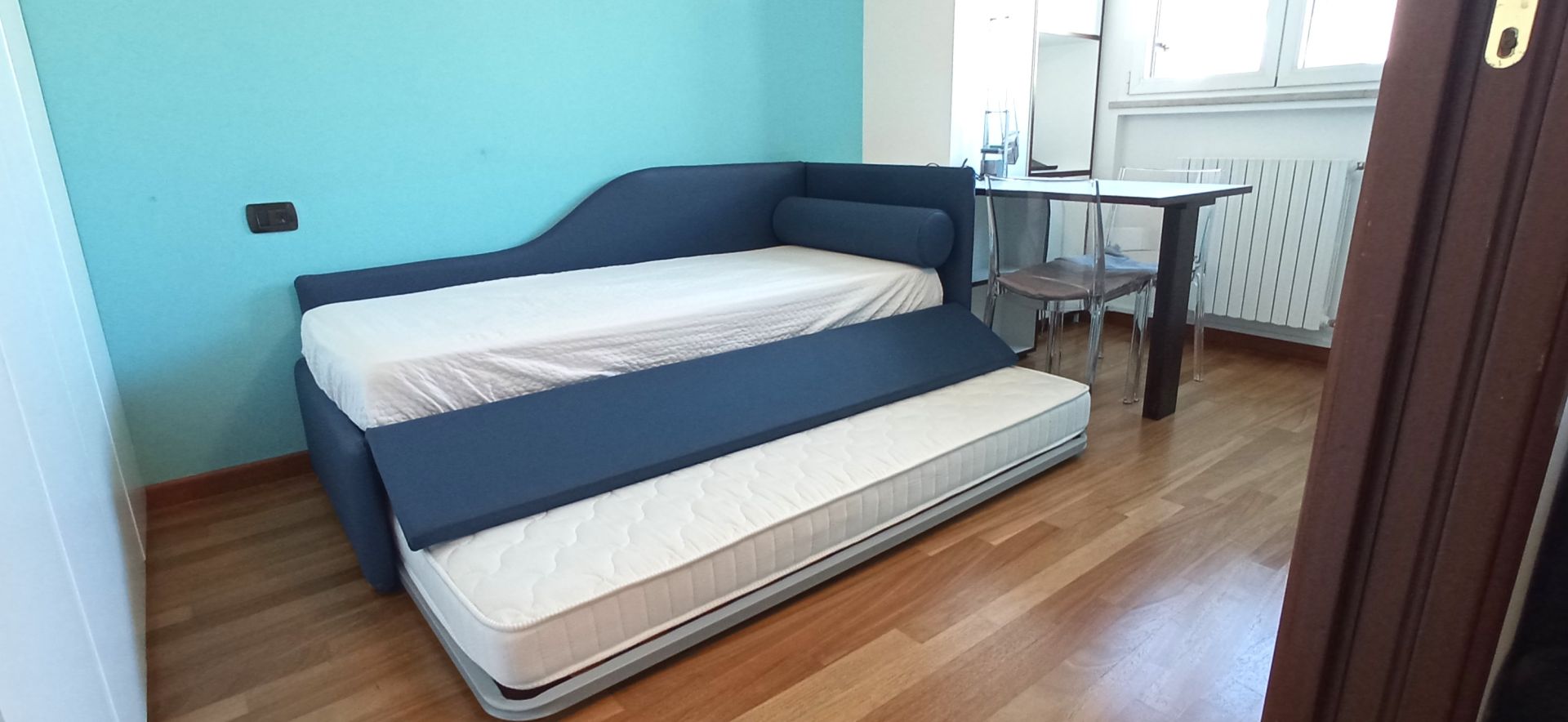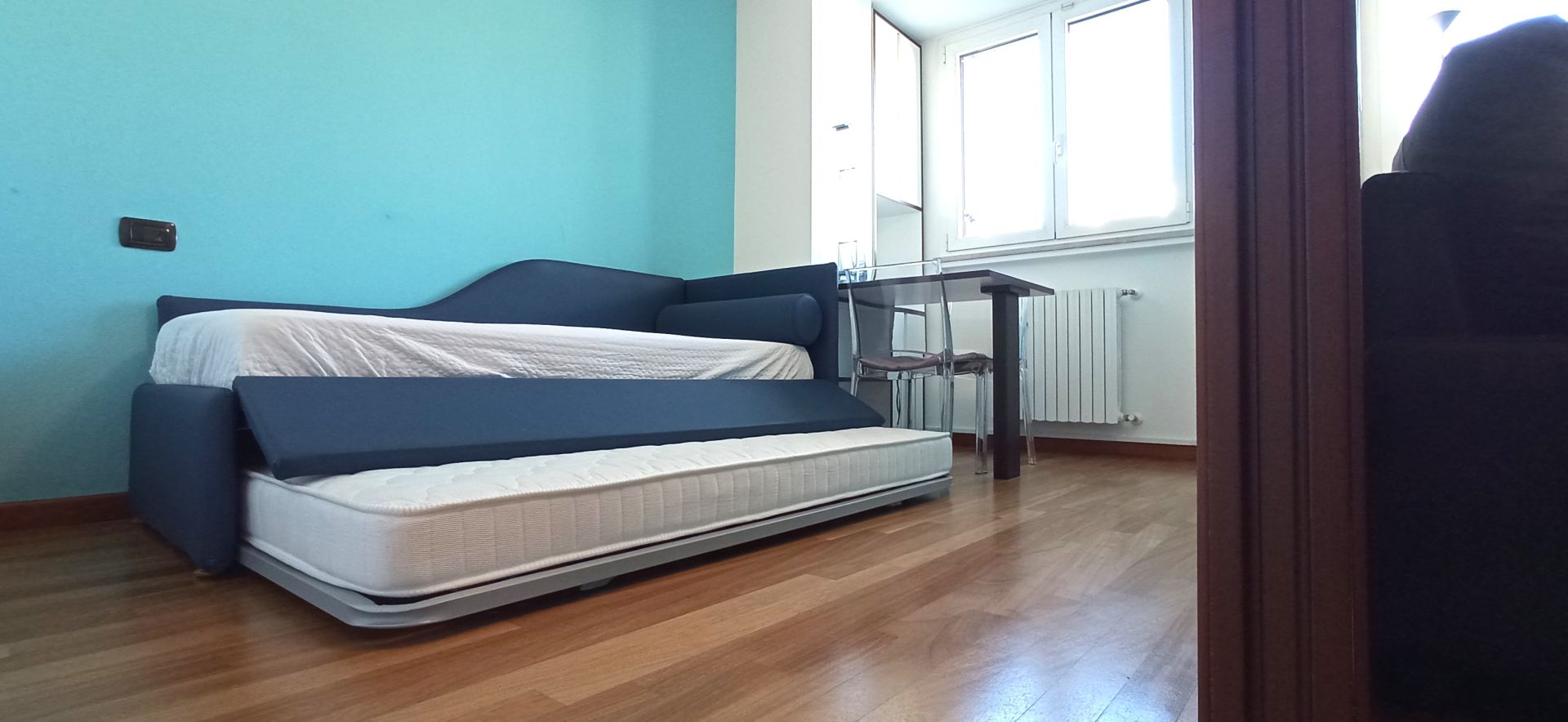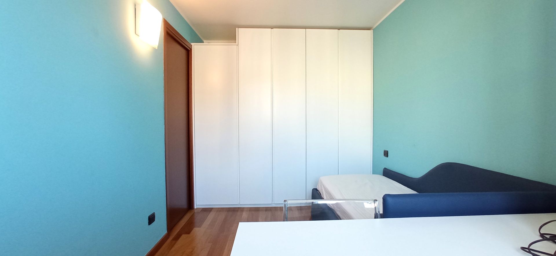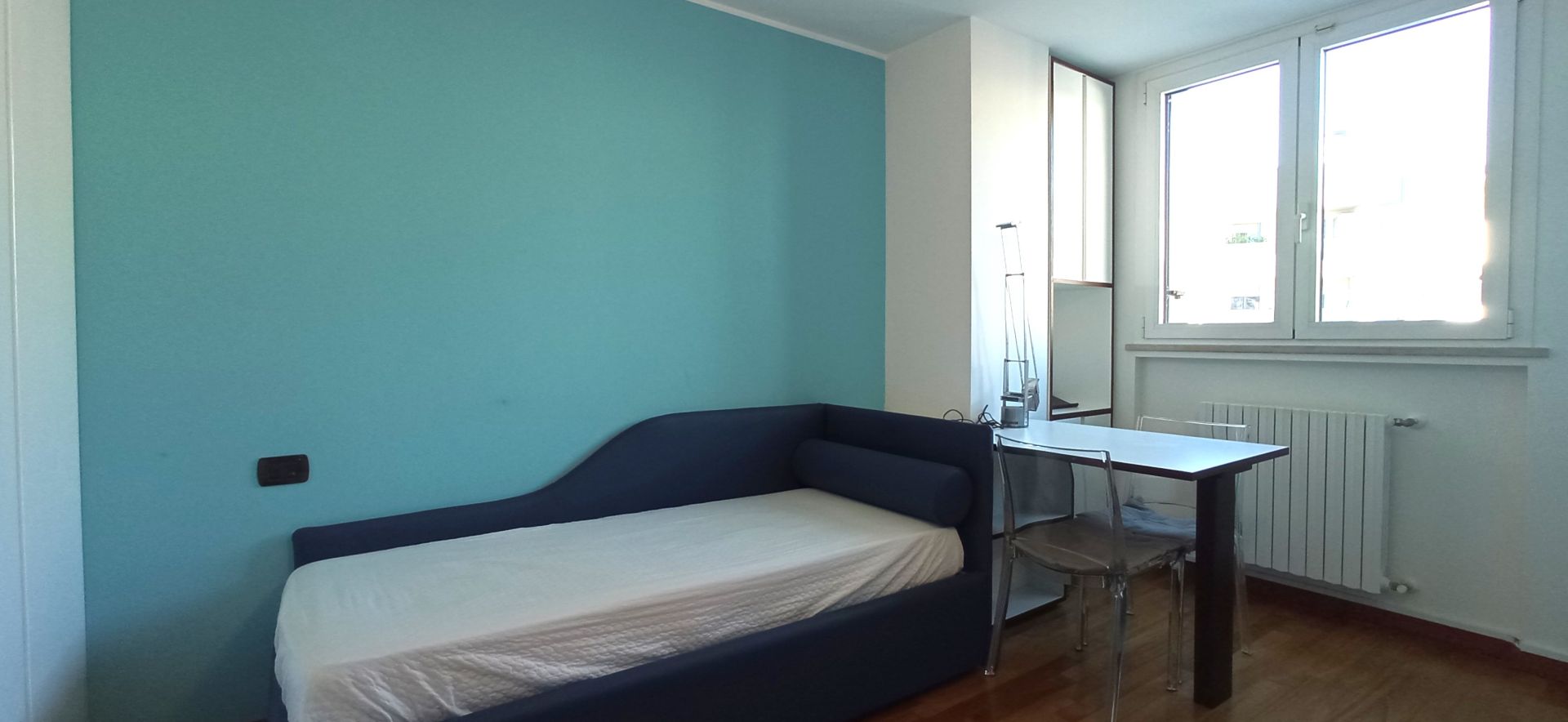 Extracasa.it propone nelle immediate vicinanze della MM2 UDINE stanza singola con armadiatura su misura. La soluzione è inserita all'interno di un immobile così composto: ingresso su soggiorno con cucina a vista, bagno e 2 camere da letto di cui una con bagno esclusivo e balcone.