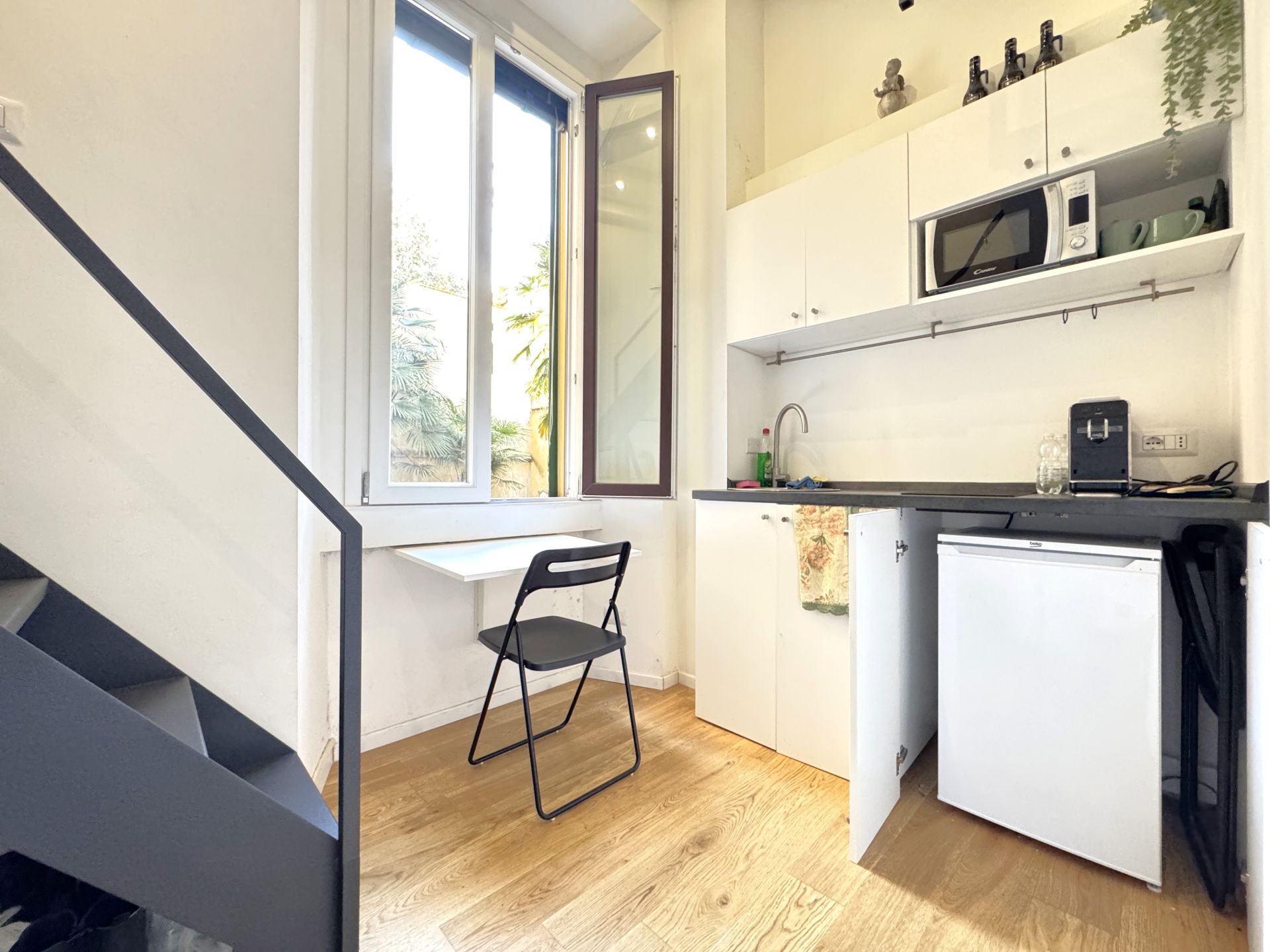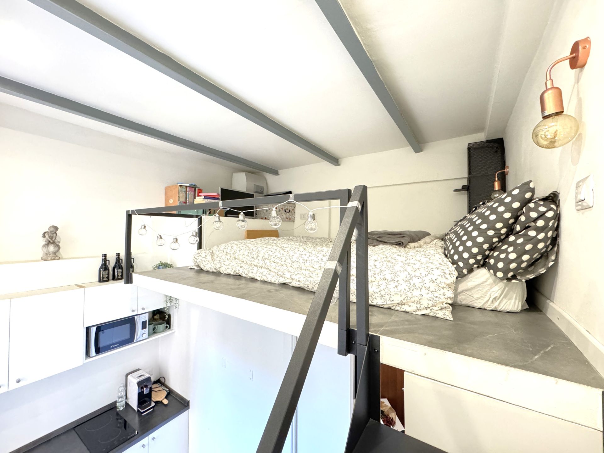 L’appartamento è composto da ingresso, bagno, luminosa zona giorno e zona notte soppalcata. Gli infissi in PVC con doppio vetro garantiscono un’ottima luminosità e isolamento termico.
