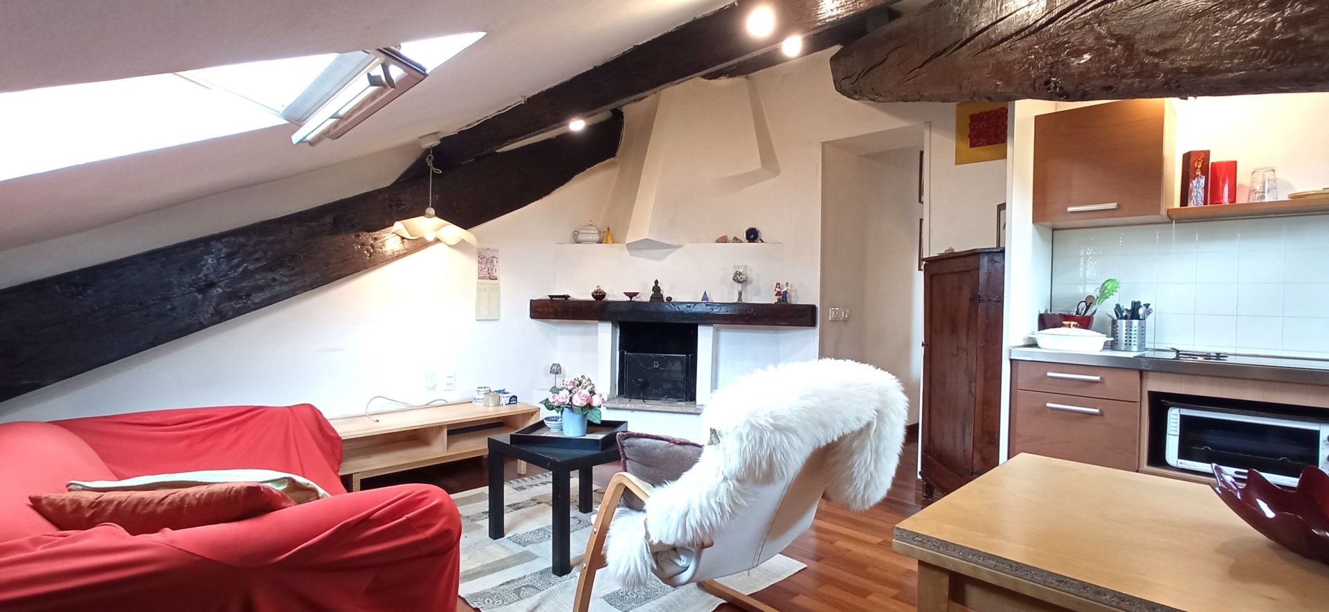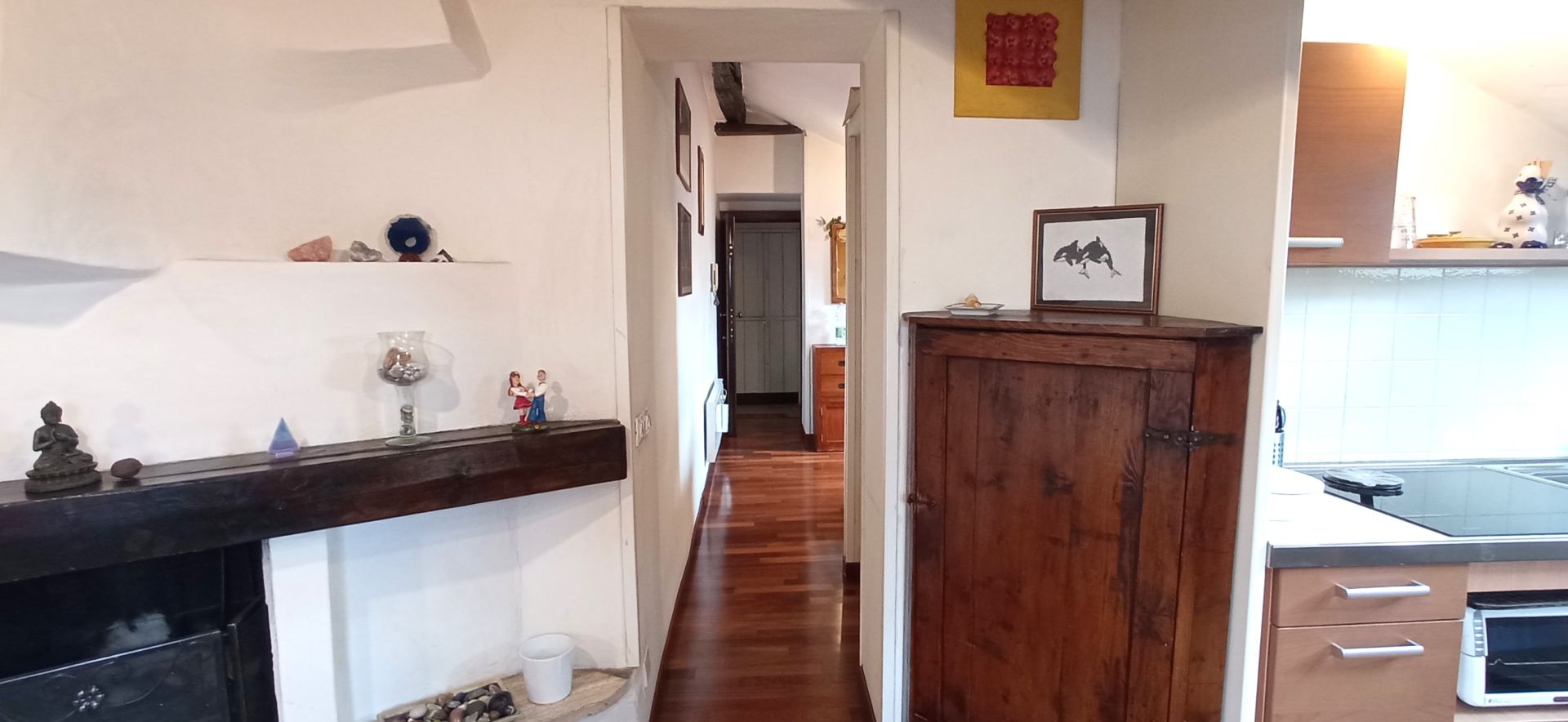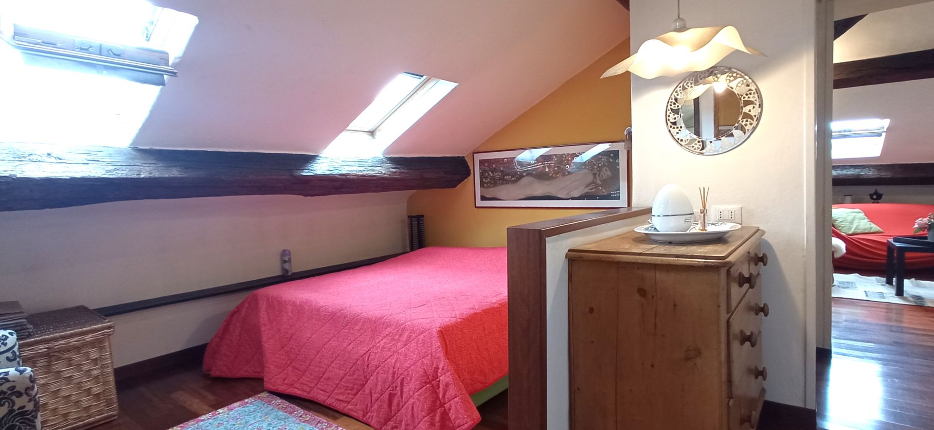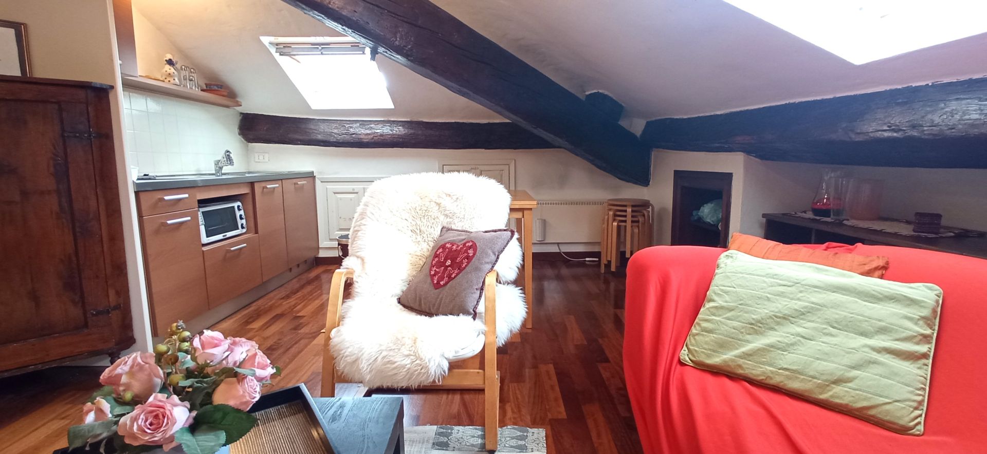 La soluzione è così composta: ingresso, zona notte, bagno e zona giorno. Infissi doppio vetro velux, pavimentazione in parquet.