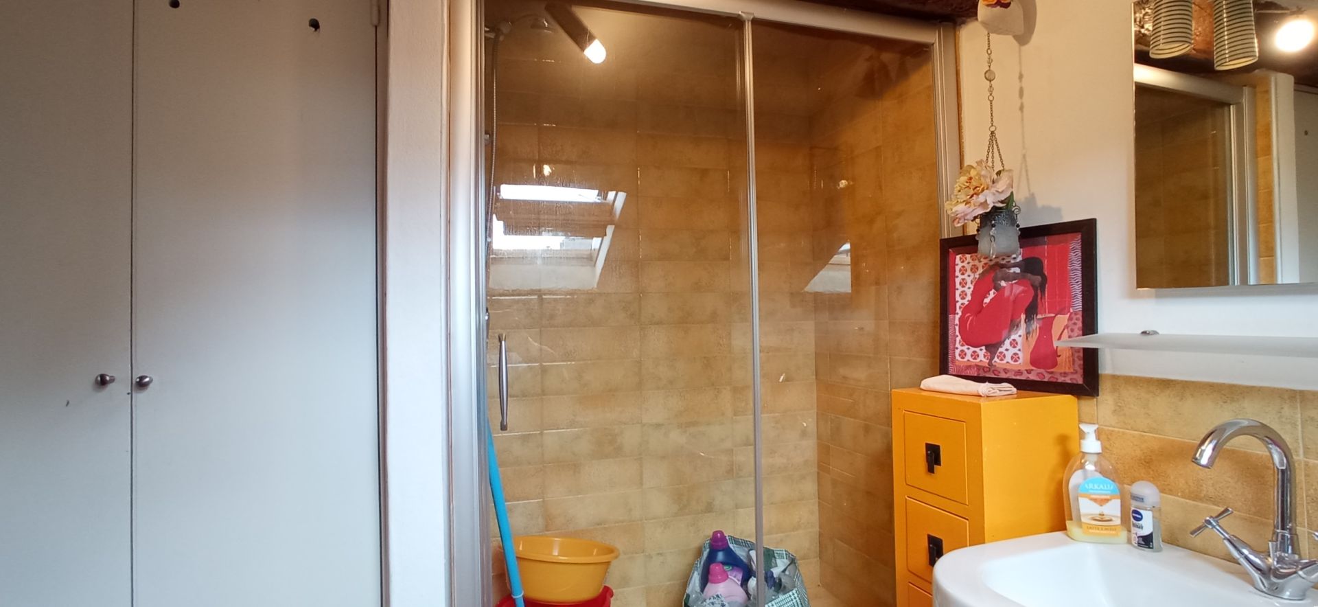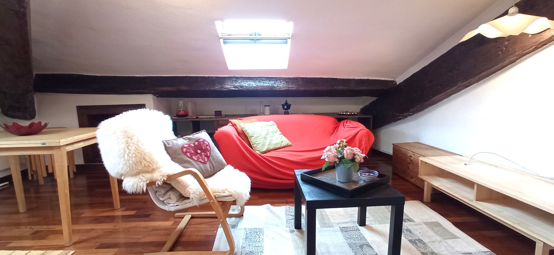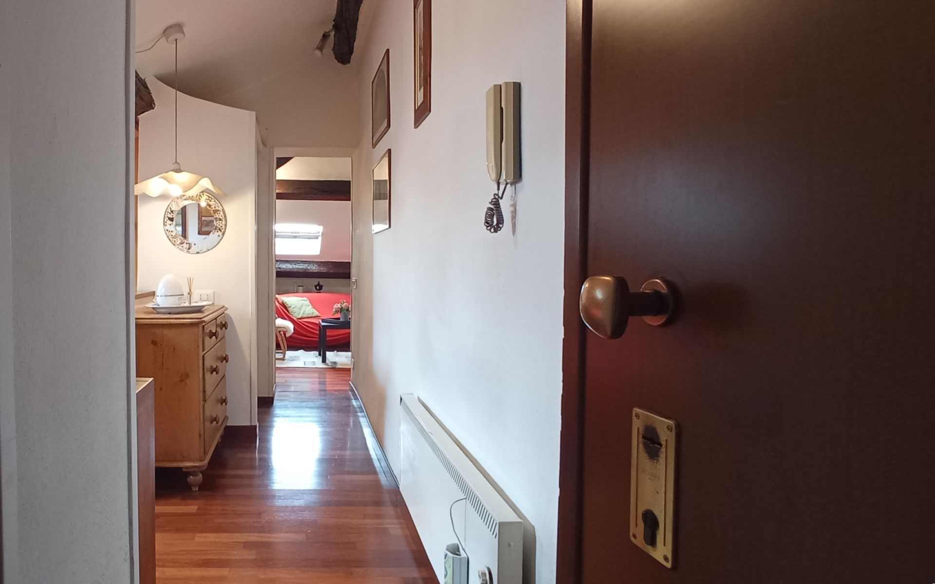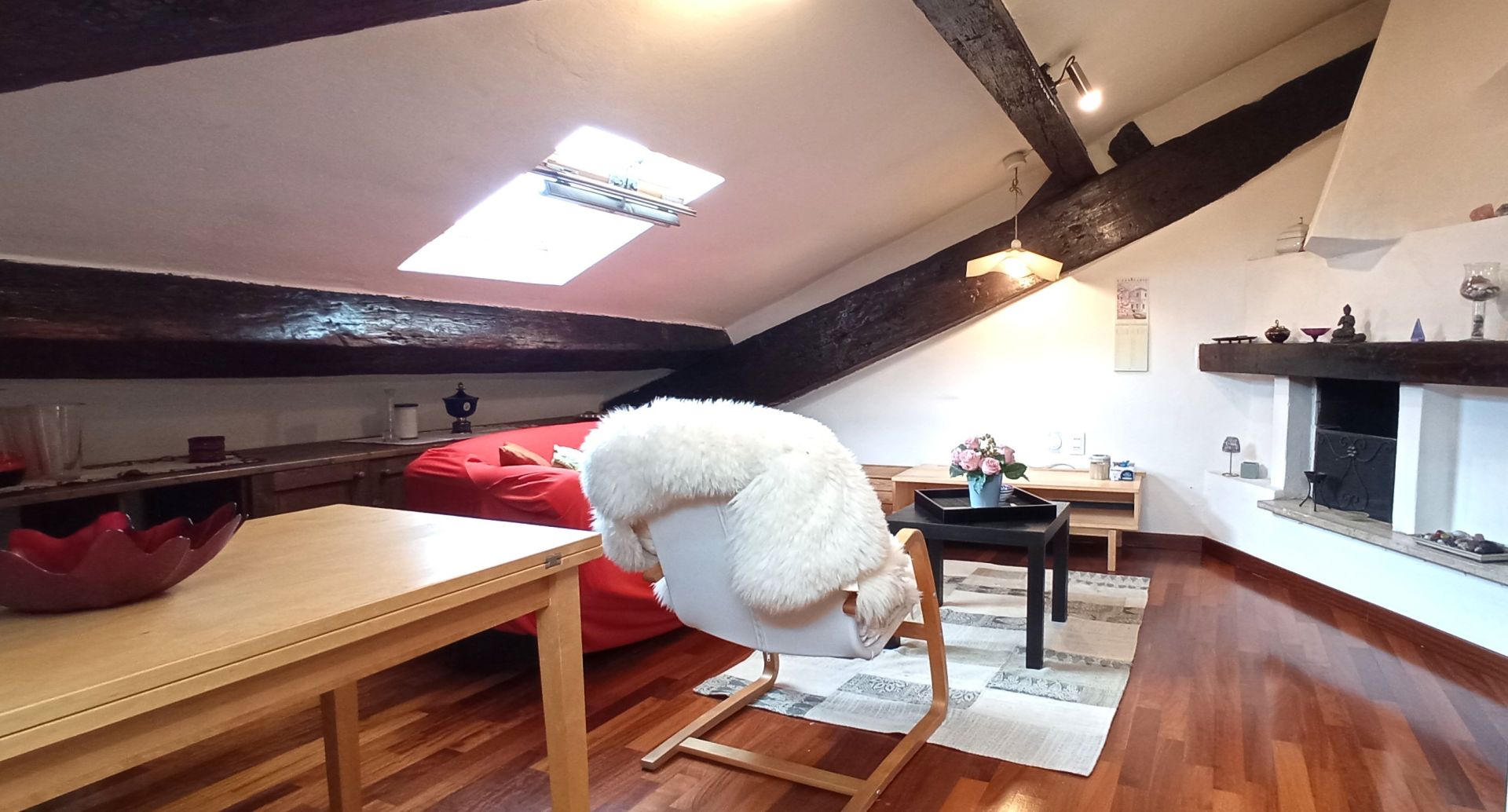 La soluzione è così composta: ingresso, zona notte, bagno e zona giorno. Infissi doppio vetro velux, pavimentazione in parquet.