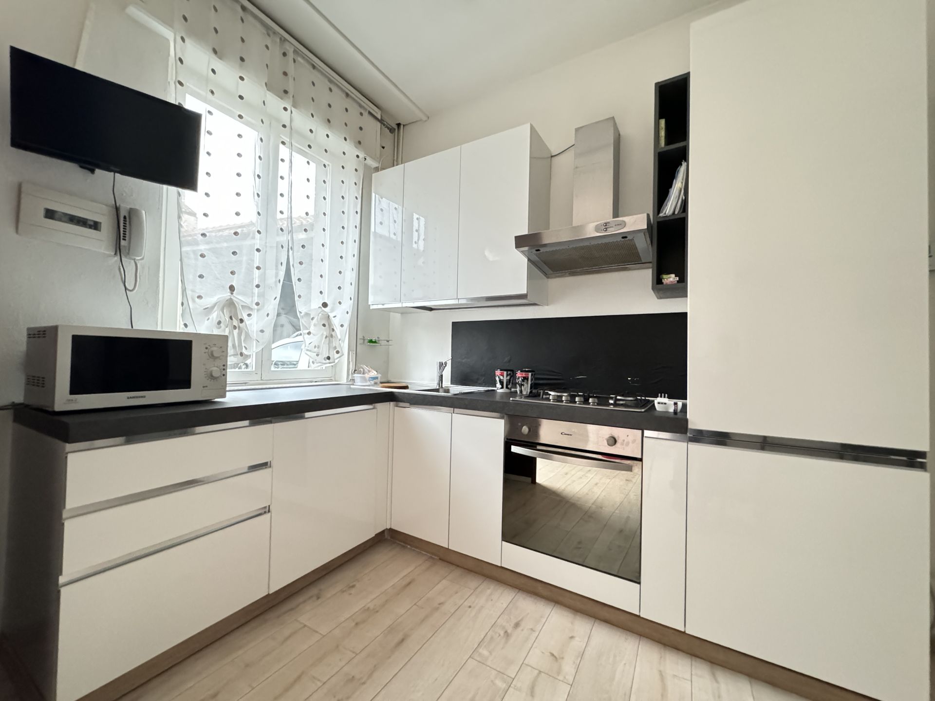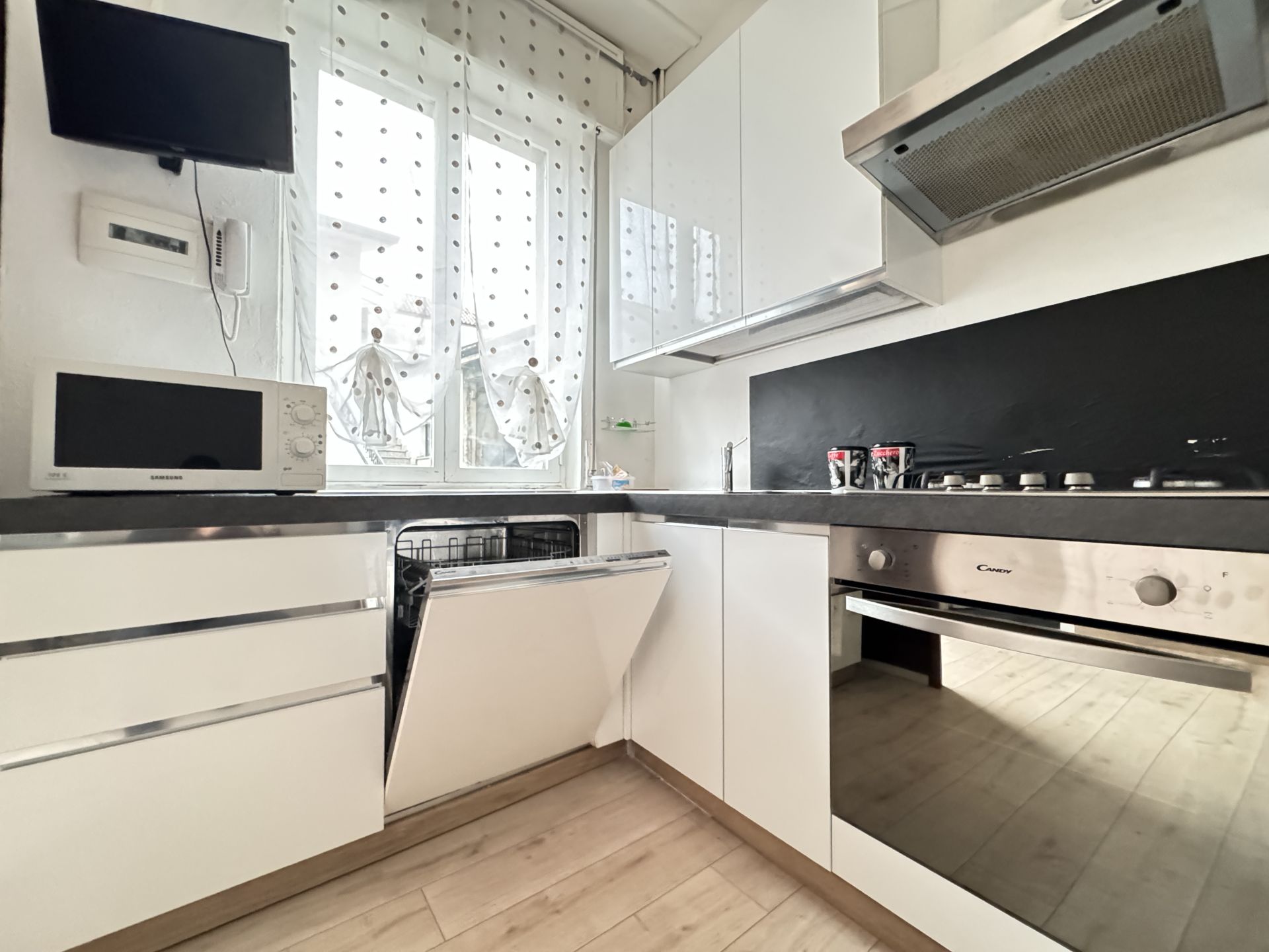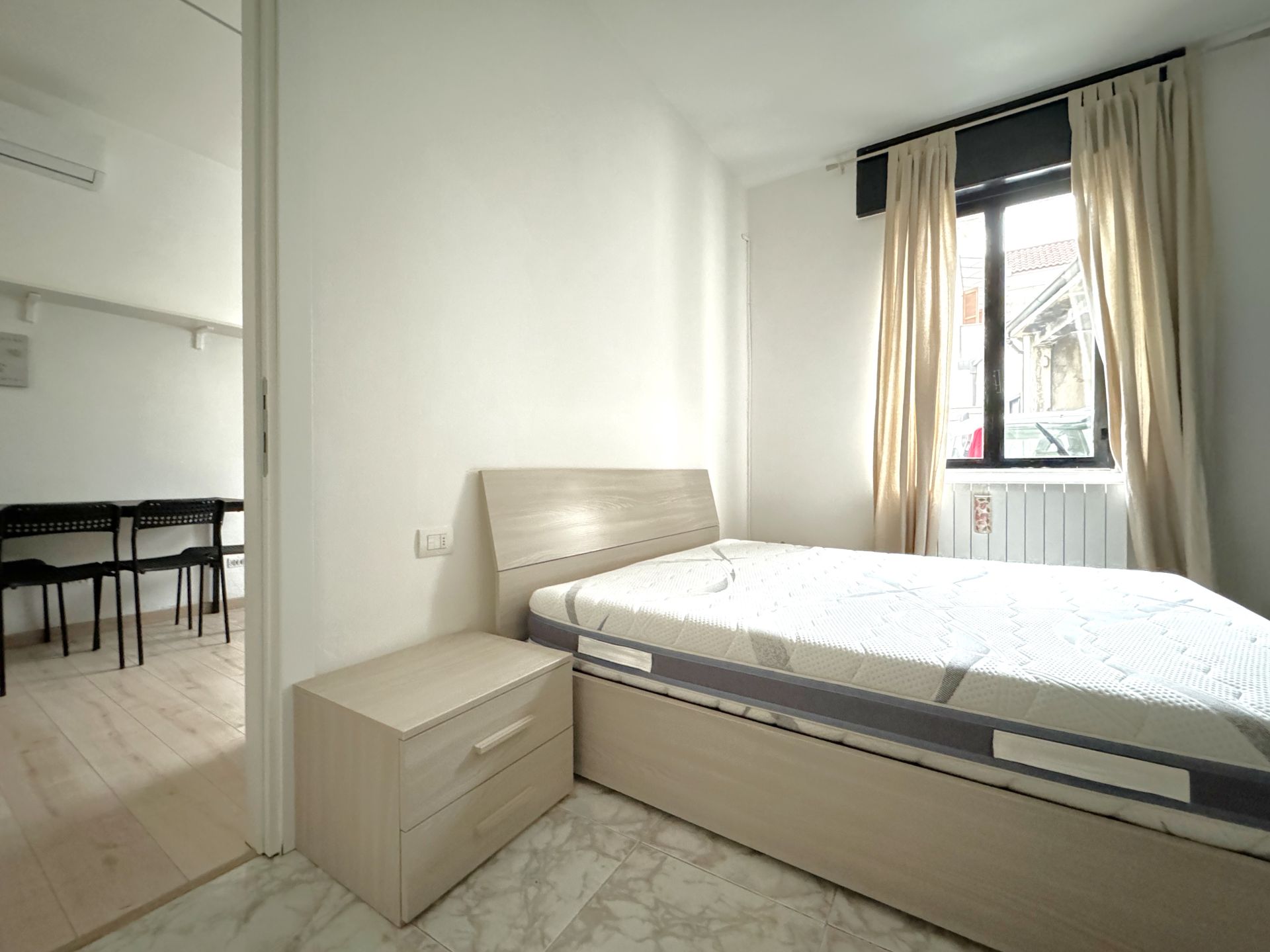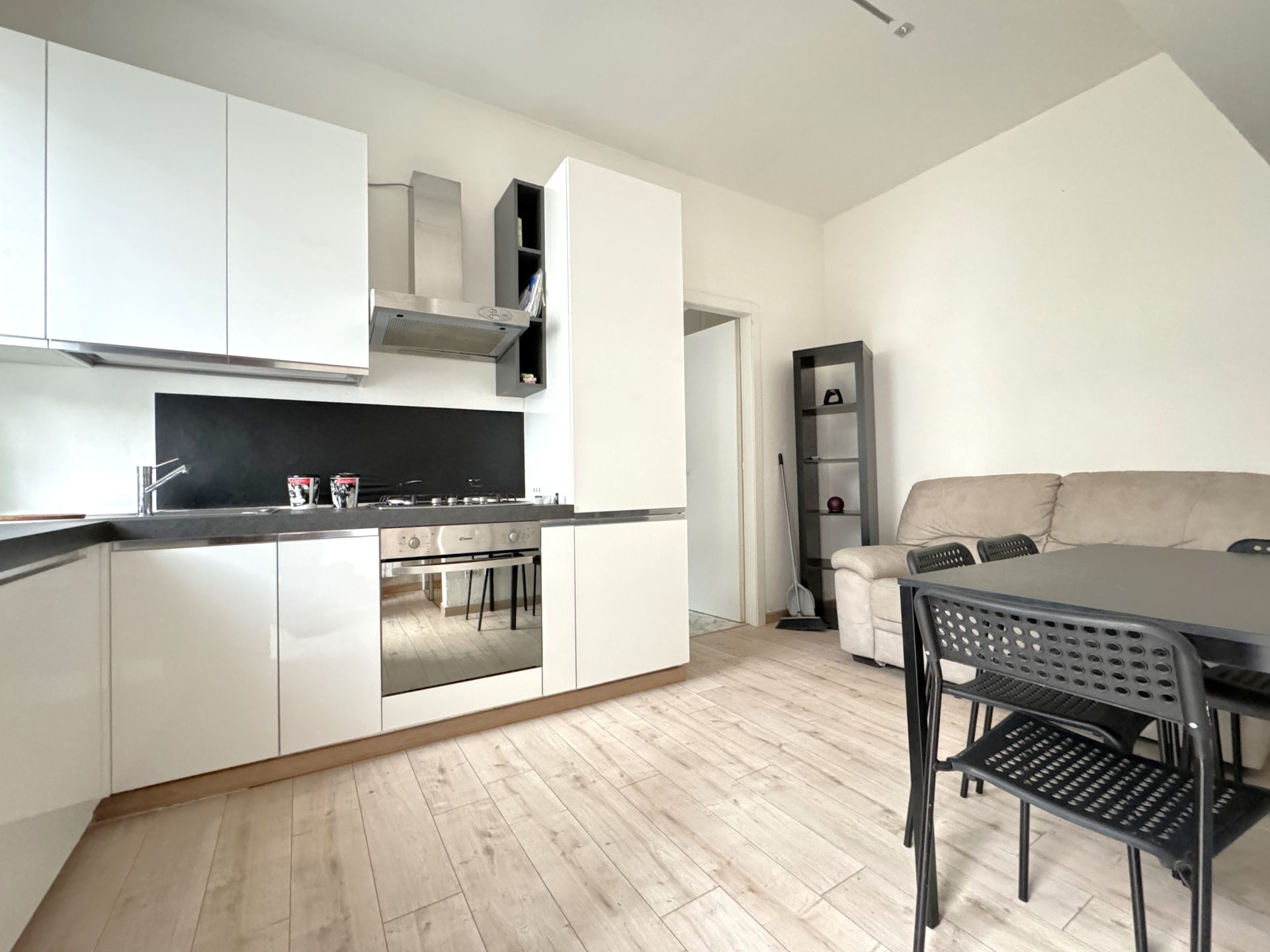 L'appartamento è composto da ingresso su soggiorno con cucina a vista, bagno e camera matrimoniale.