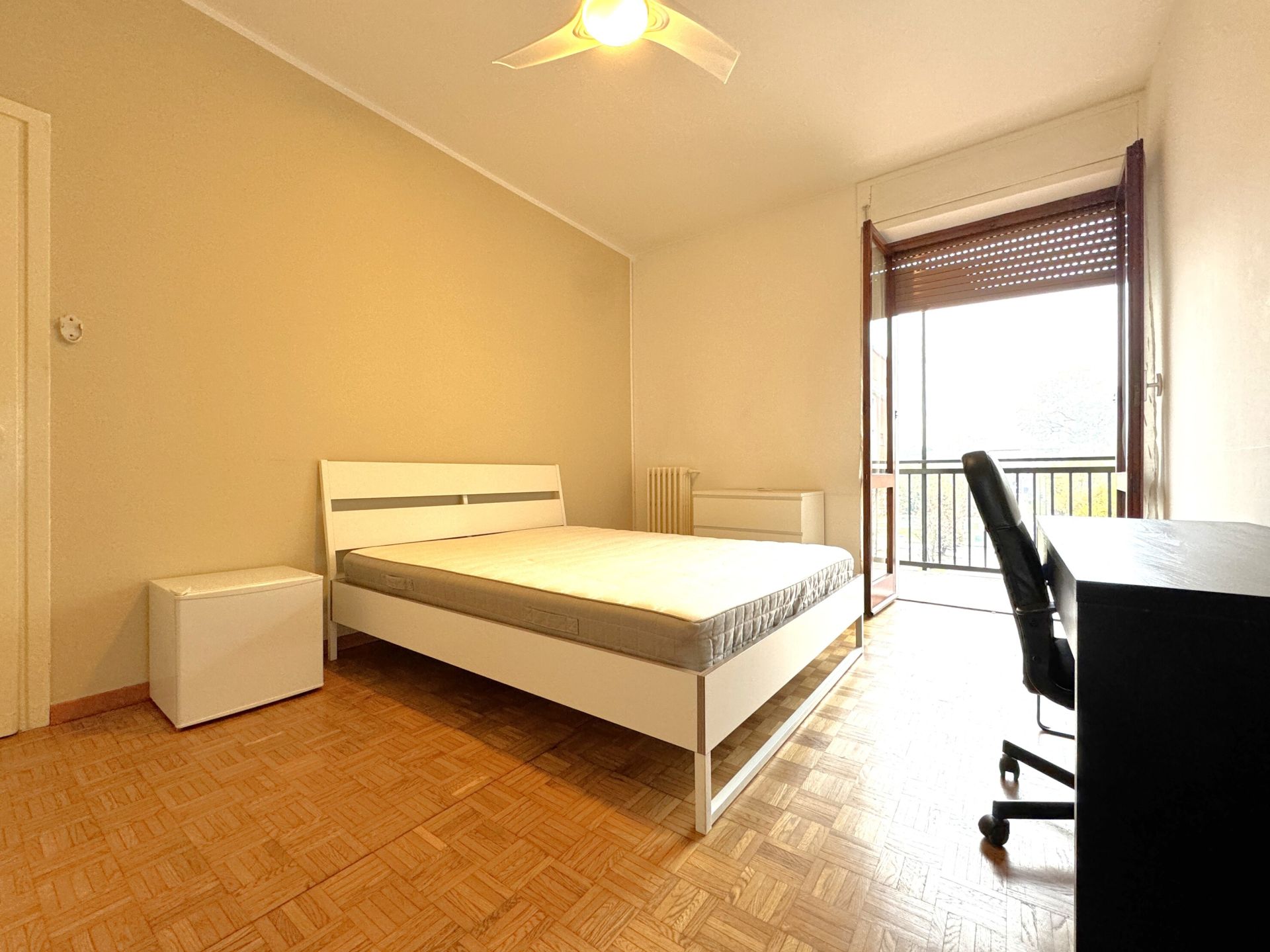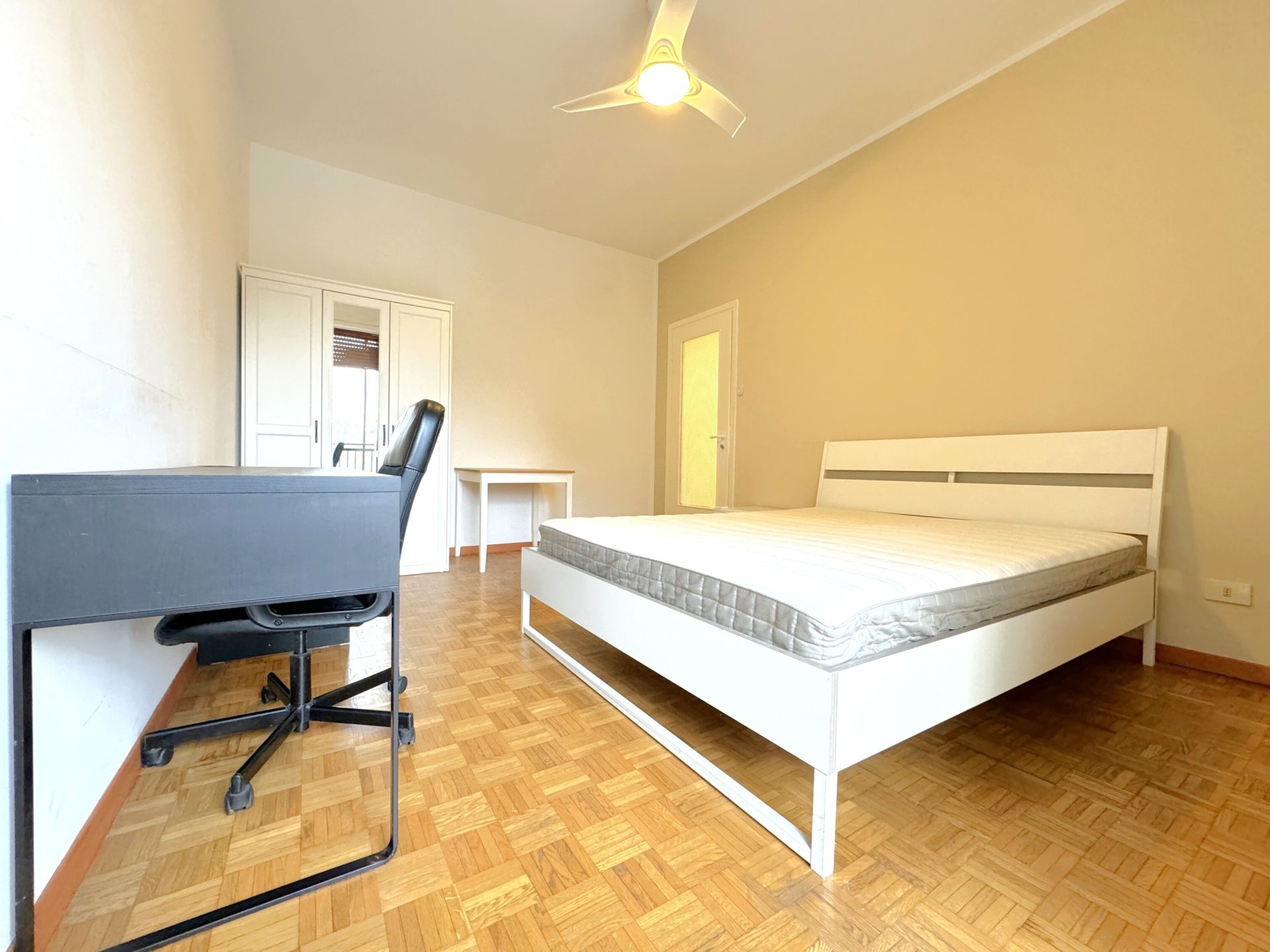 La stanza si trova in un appartamento condiviso, abitato da giovani professionisti/studenti, con spazi comuni accoglienti e funzionali: cucina completamente attrezzata e bagno in condivisione.