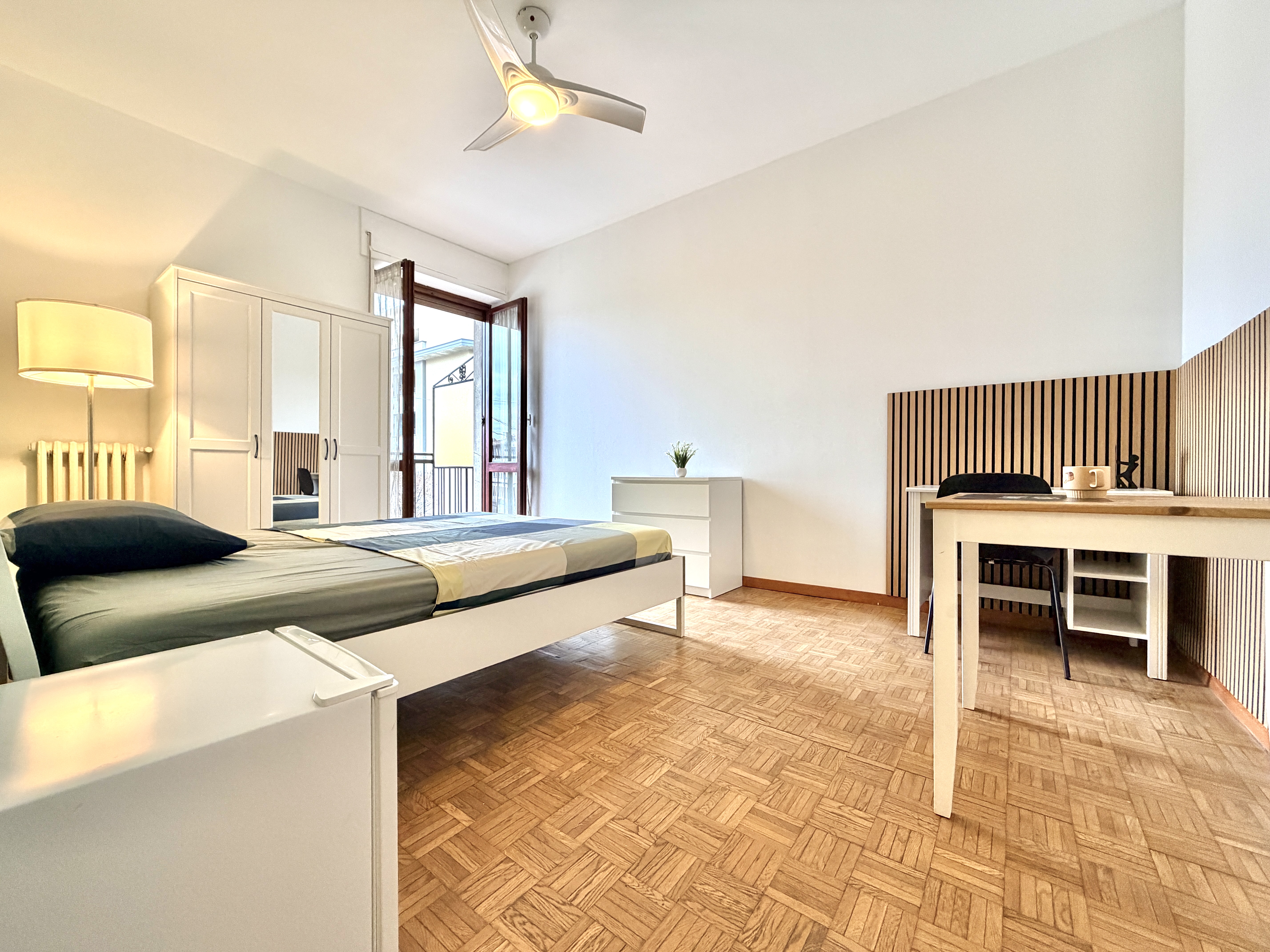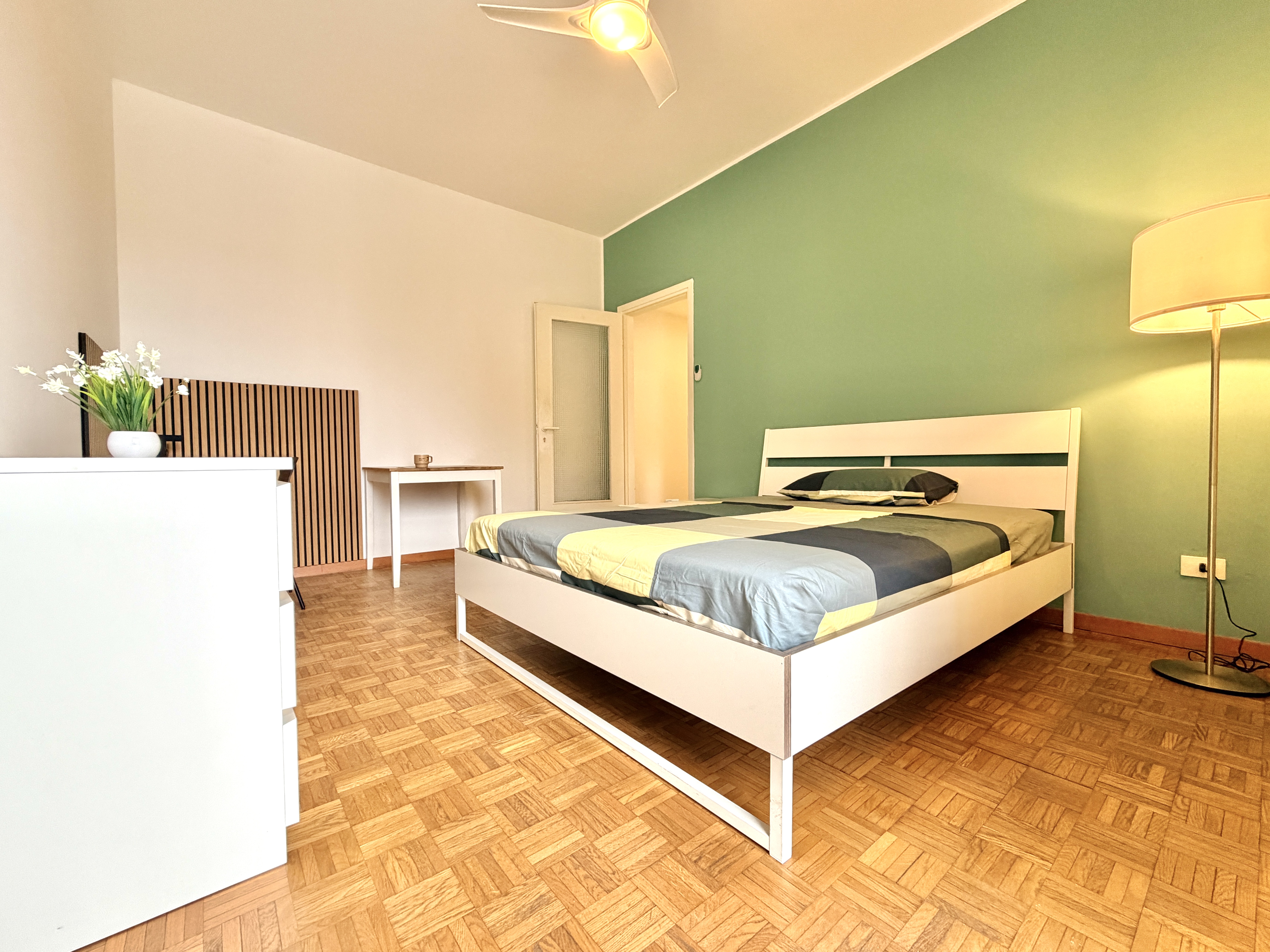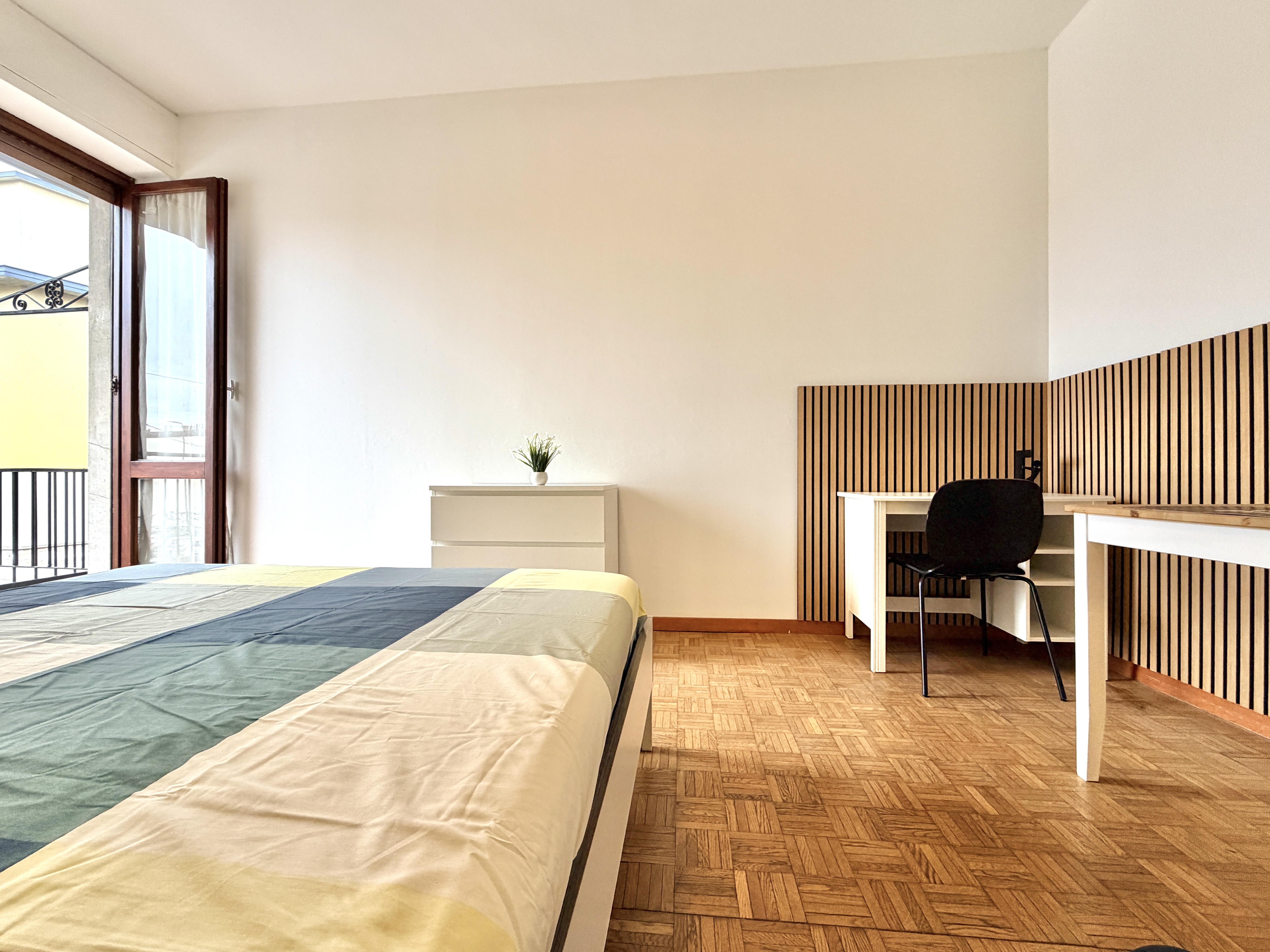 La stanza si trova in un appartamento condiviso, abitato da giovani professionisti/studenti, con spazi comuni accoglienti e funzionali: cucina completamente attrezzata e bagno in condivisione.