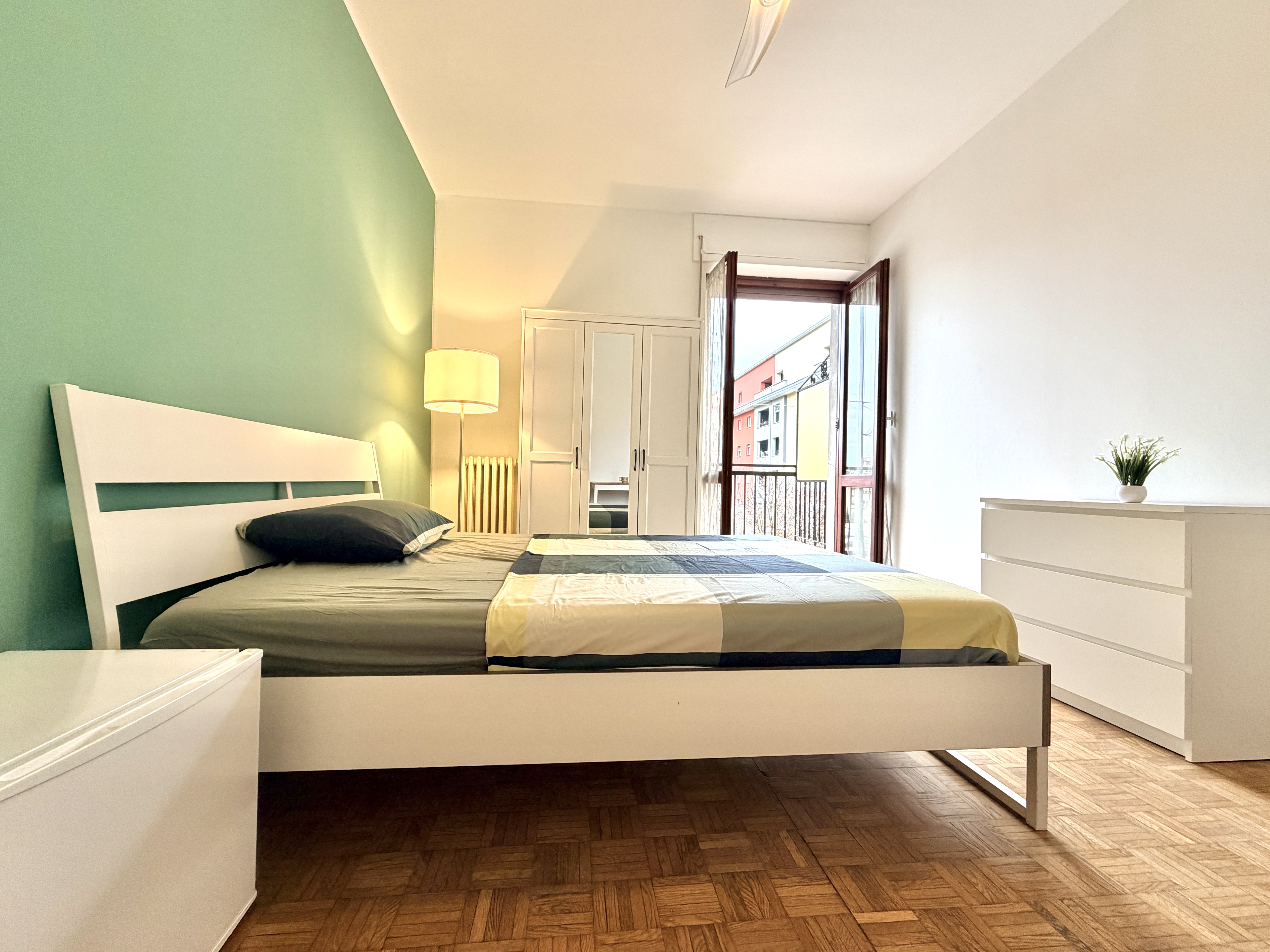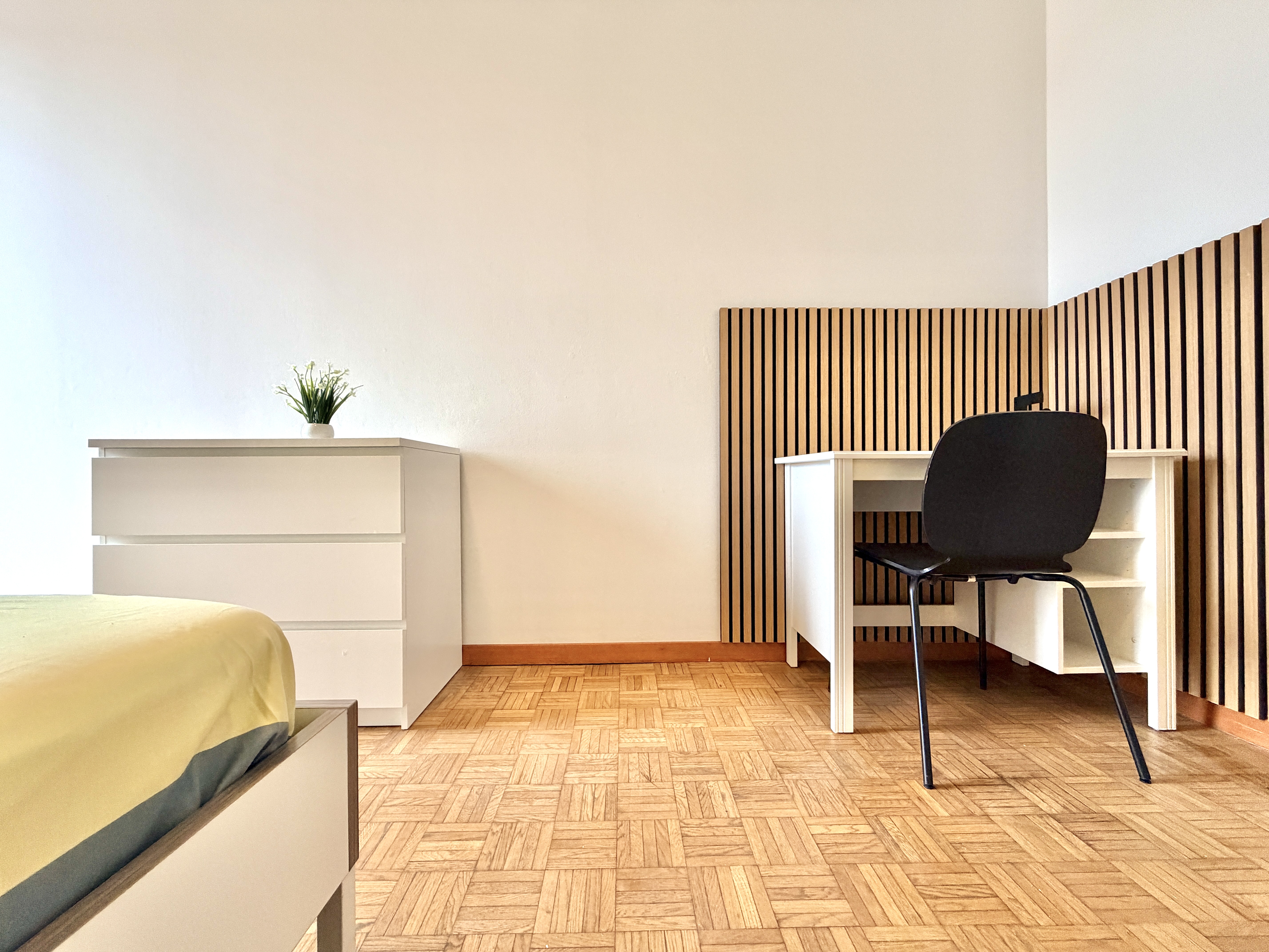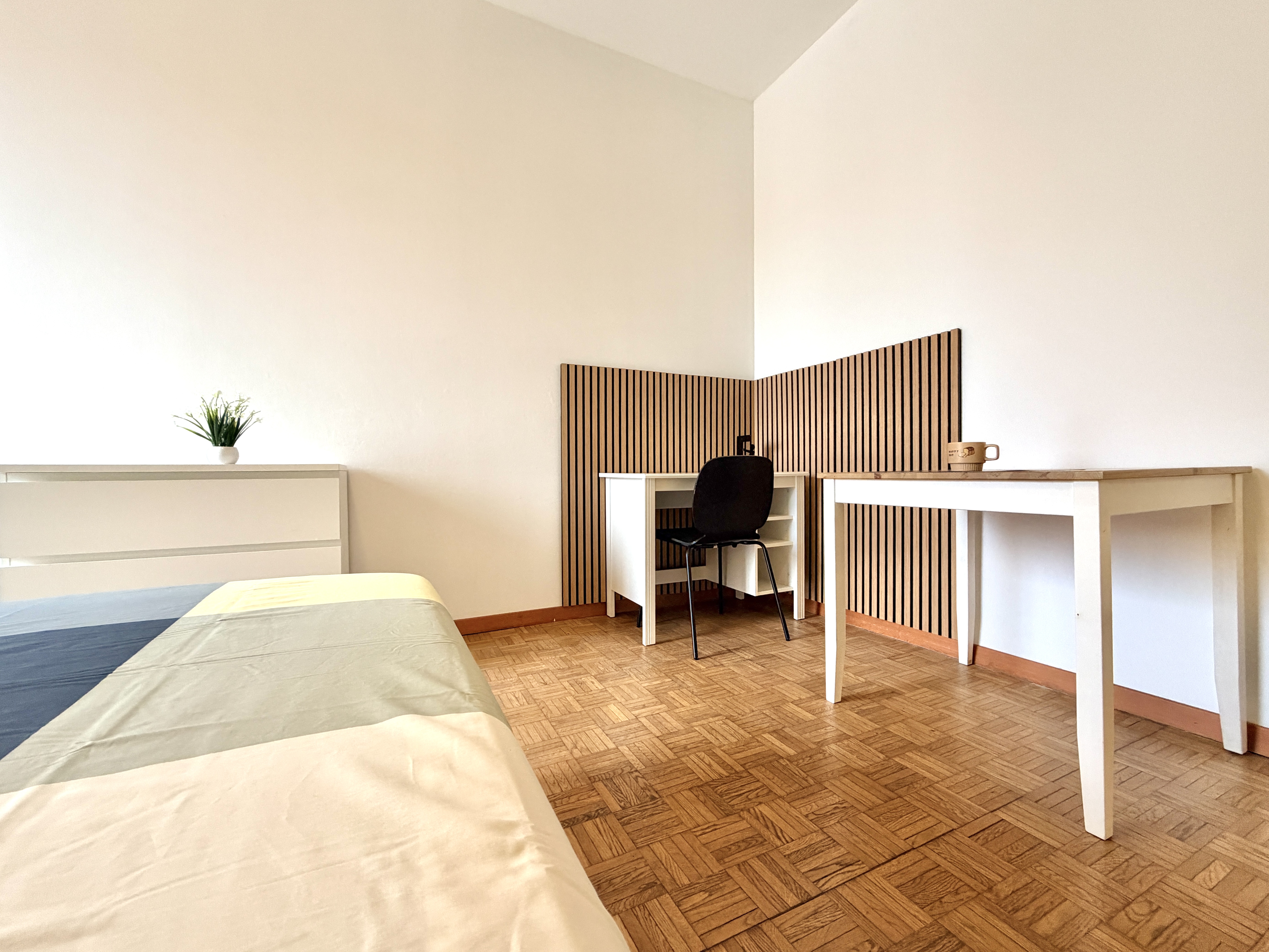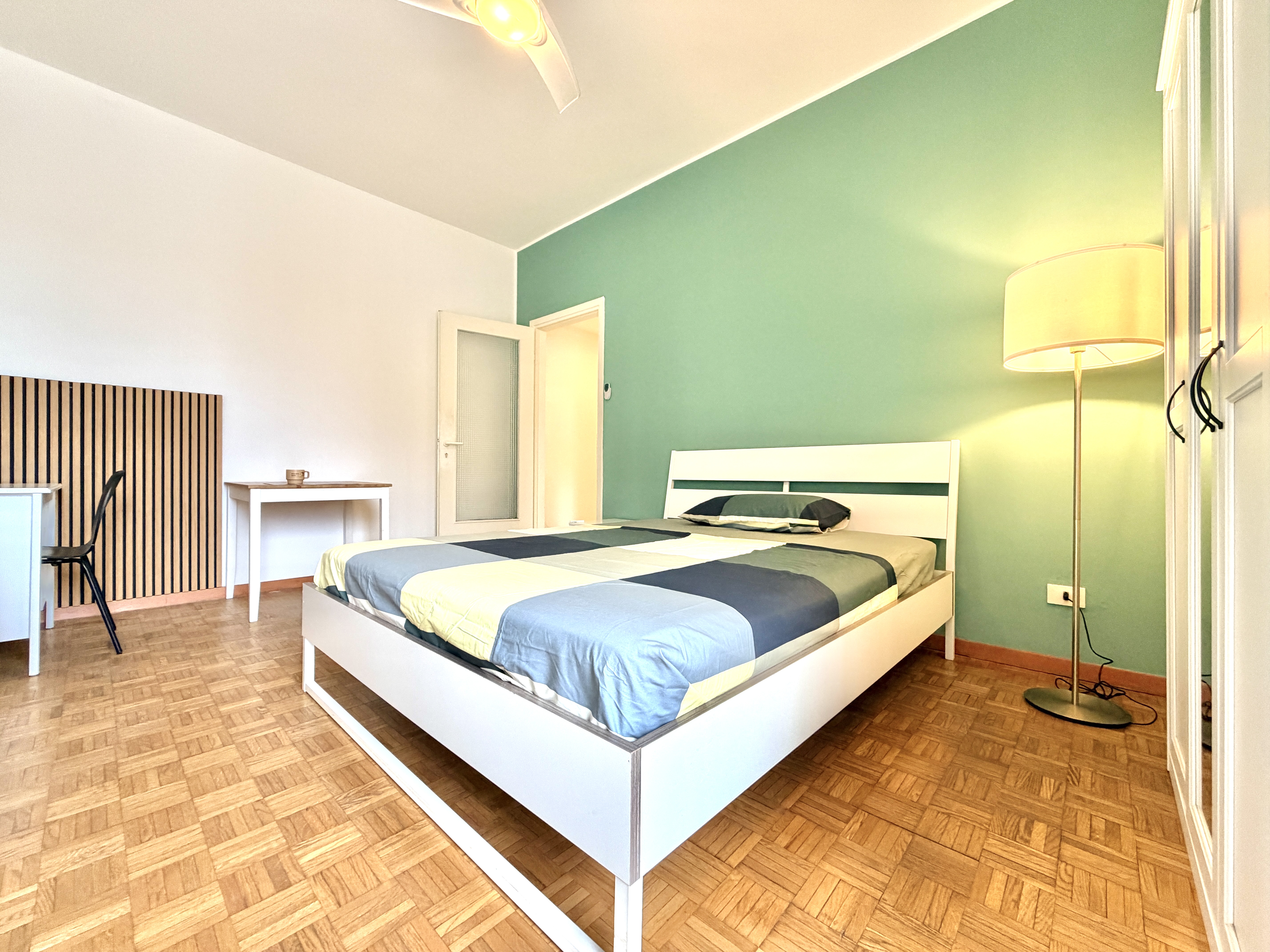 La stanza si trova in un appartamento condiviso, abitato da giovani professionisti/studenti, con spazi comuni accoglienti e funzionali: cucina completamente attrezzata e bagno in condivisione.
