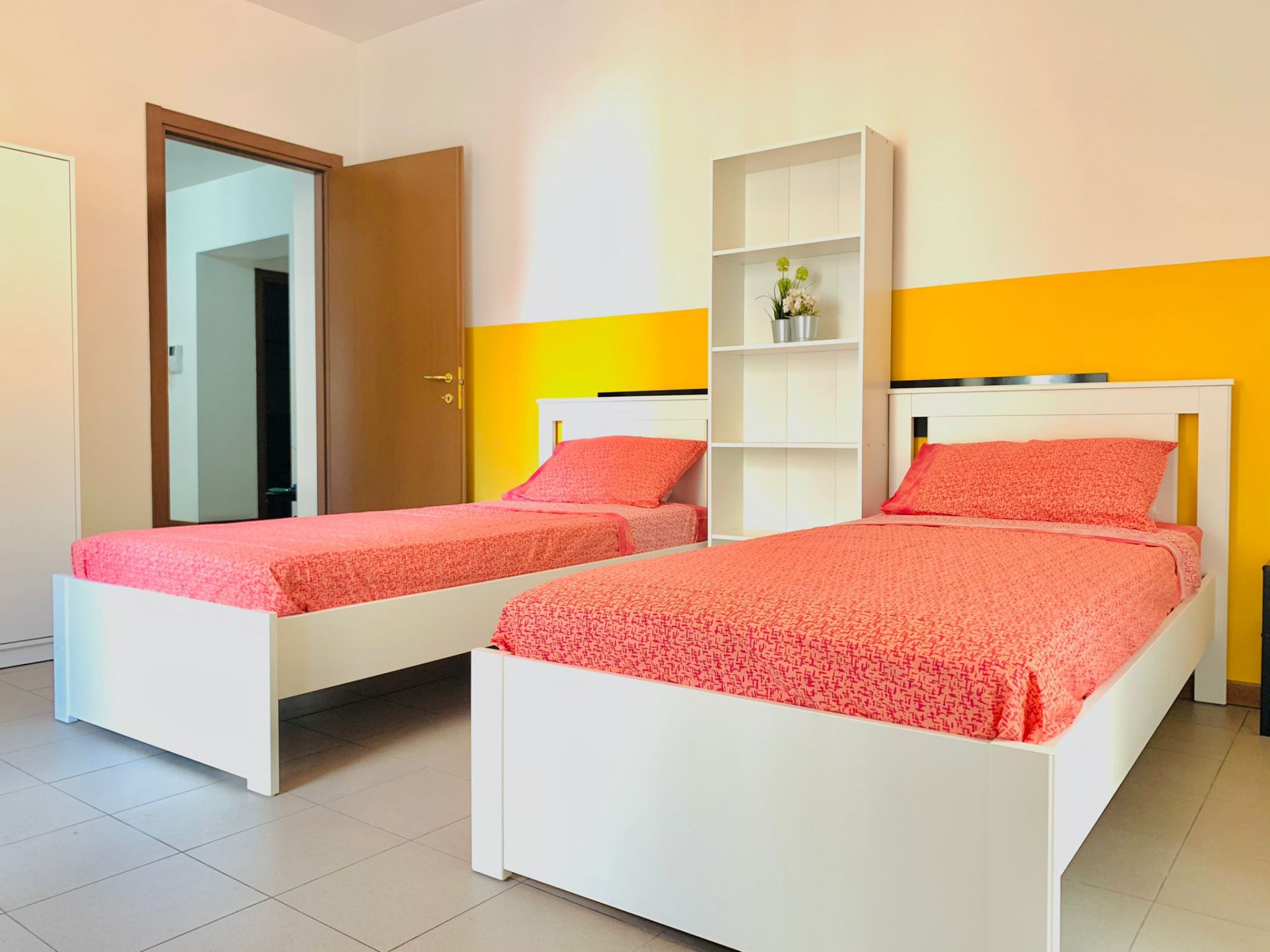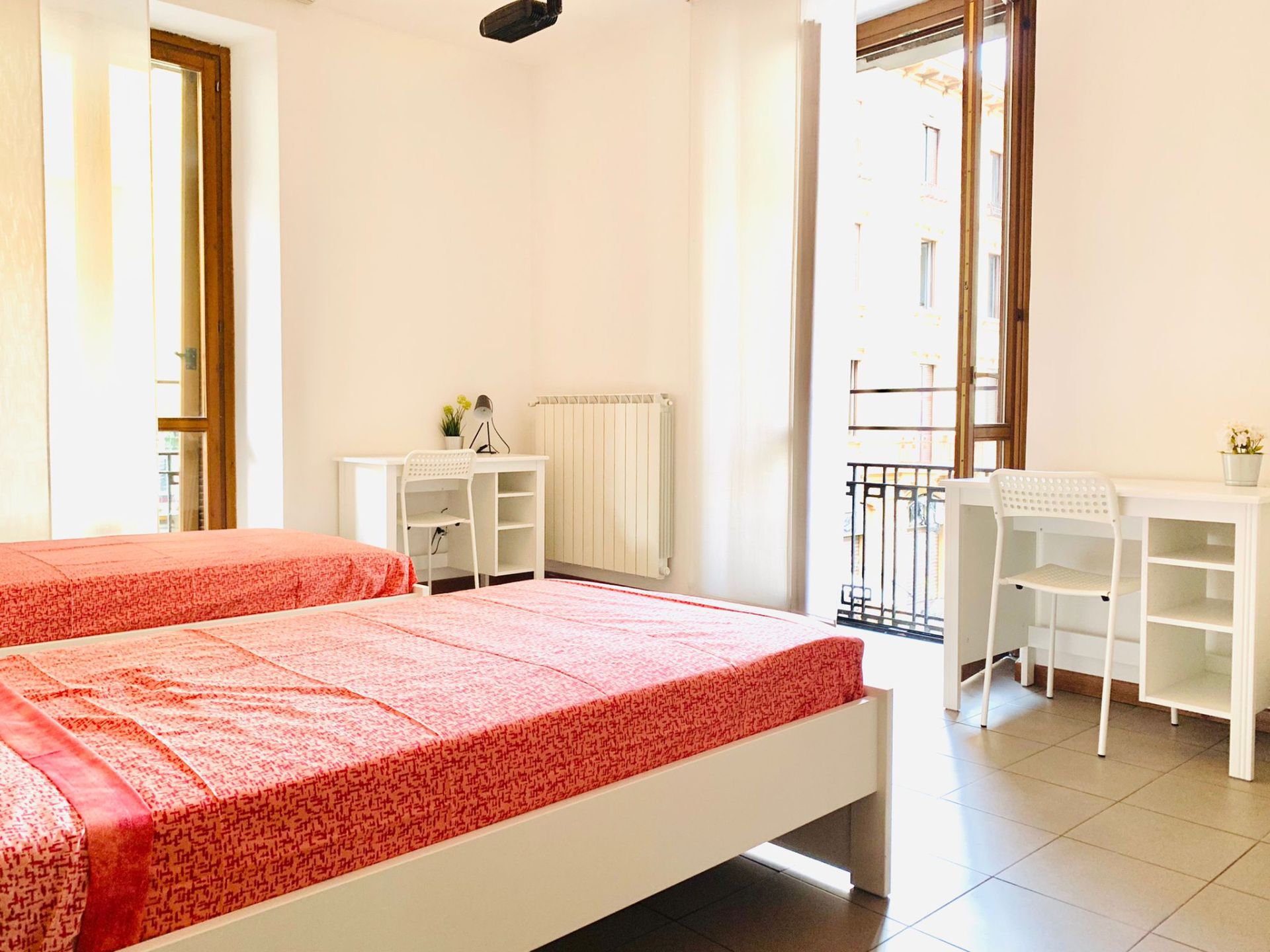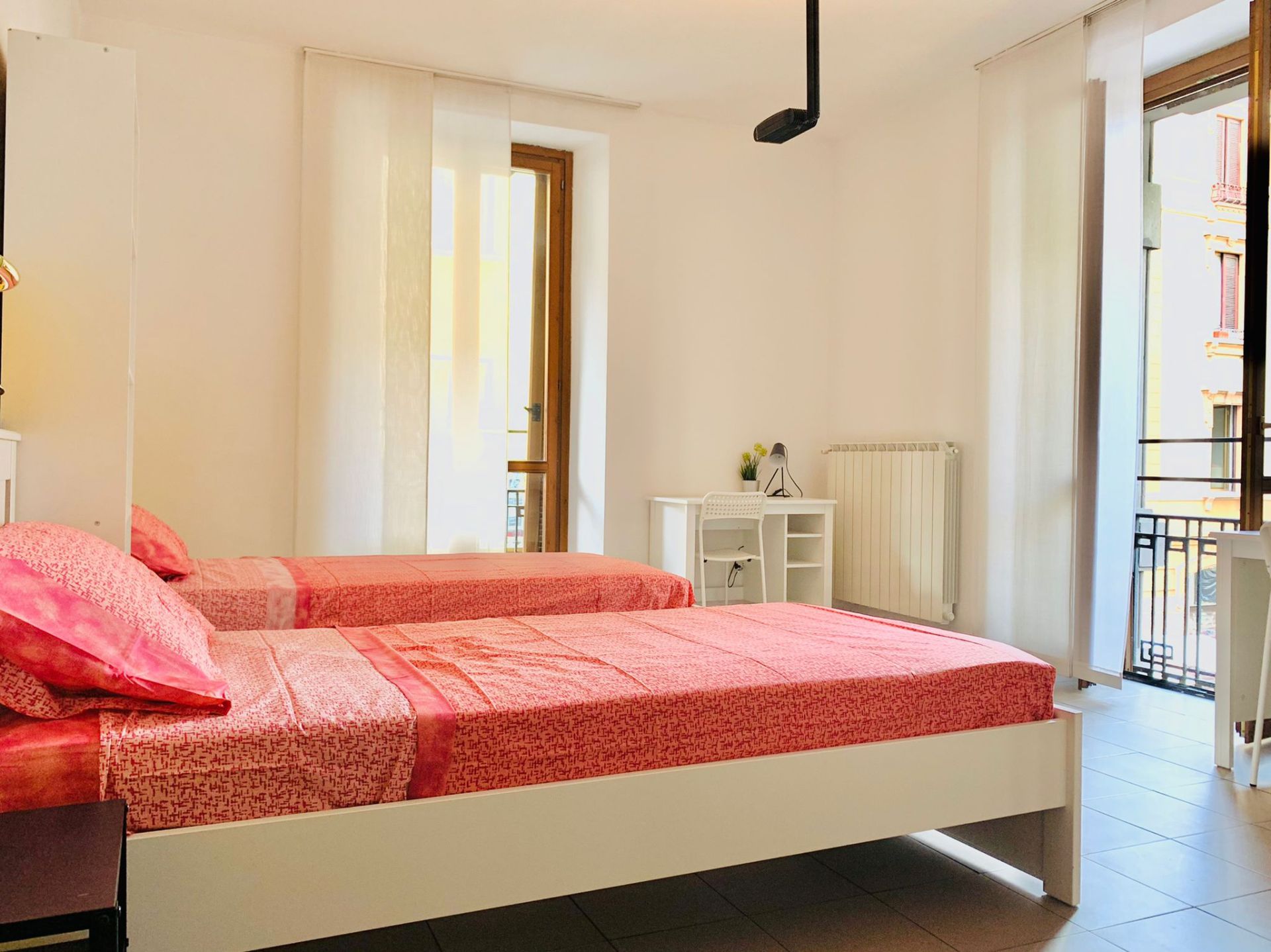 L’appartamento si trova in Via Andreoli 20, al primo piano di un contesto tranquillo, ed è composto da una spaziosa zona giorno con cucina attrezzata, perfetta per momenti di convivialità e studio, una camera singola e una camera doppia con due letti singoli, oltre a un bagno finestrato.