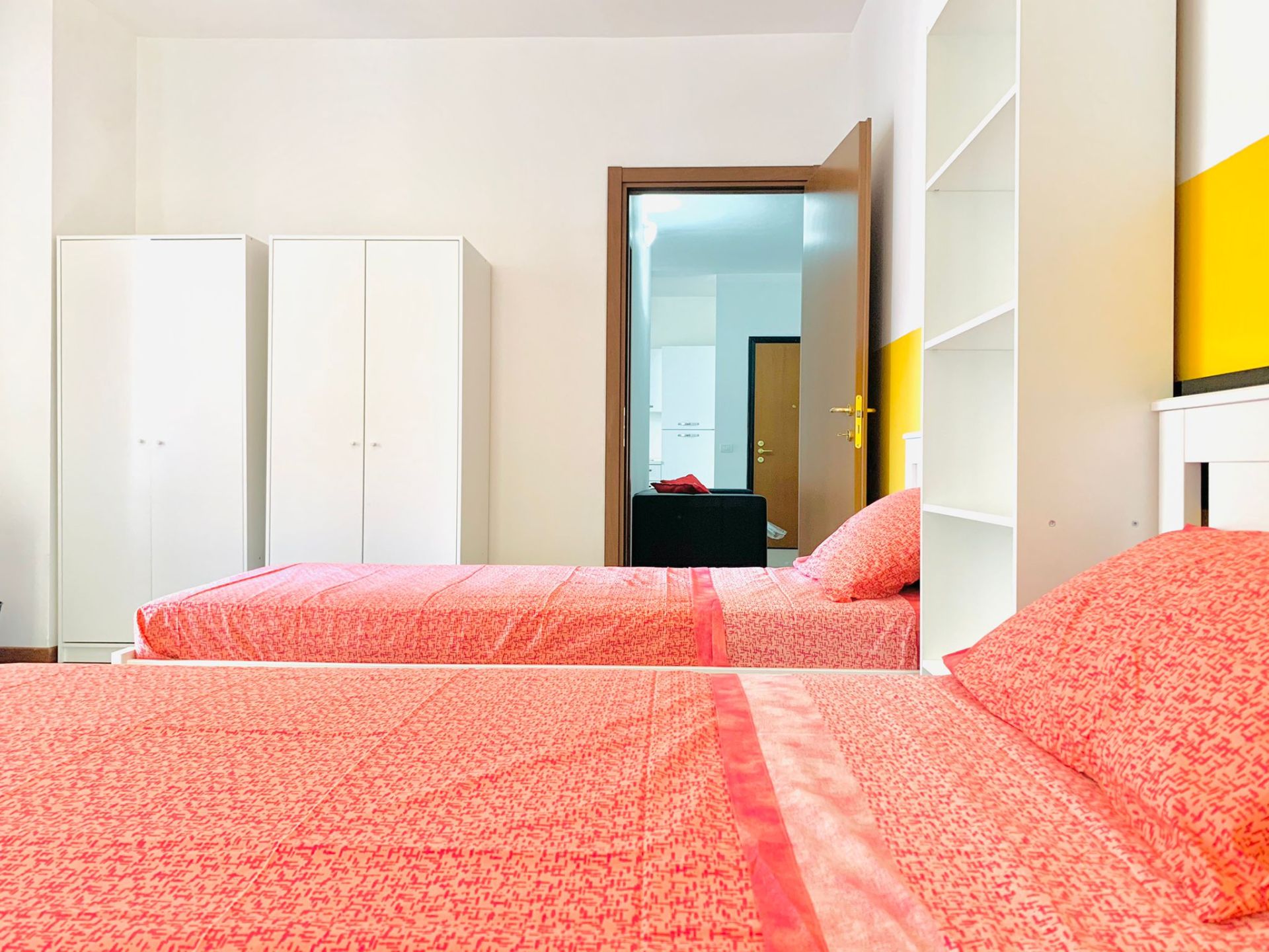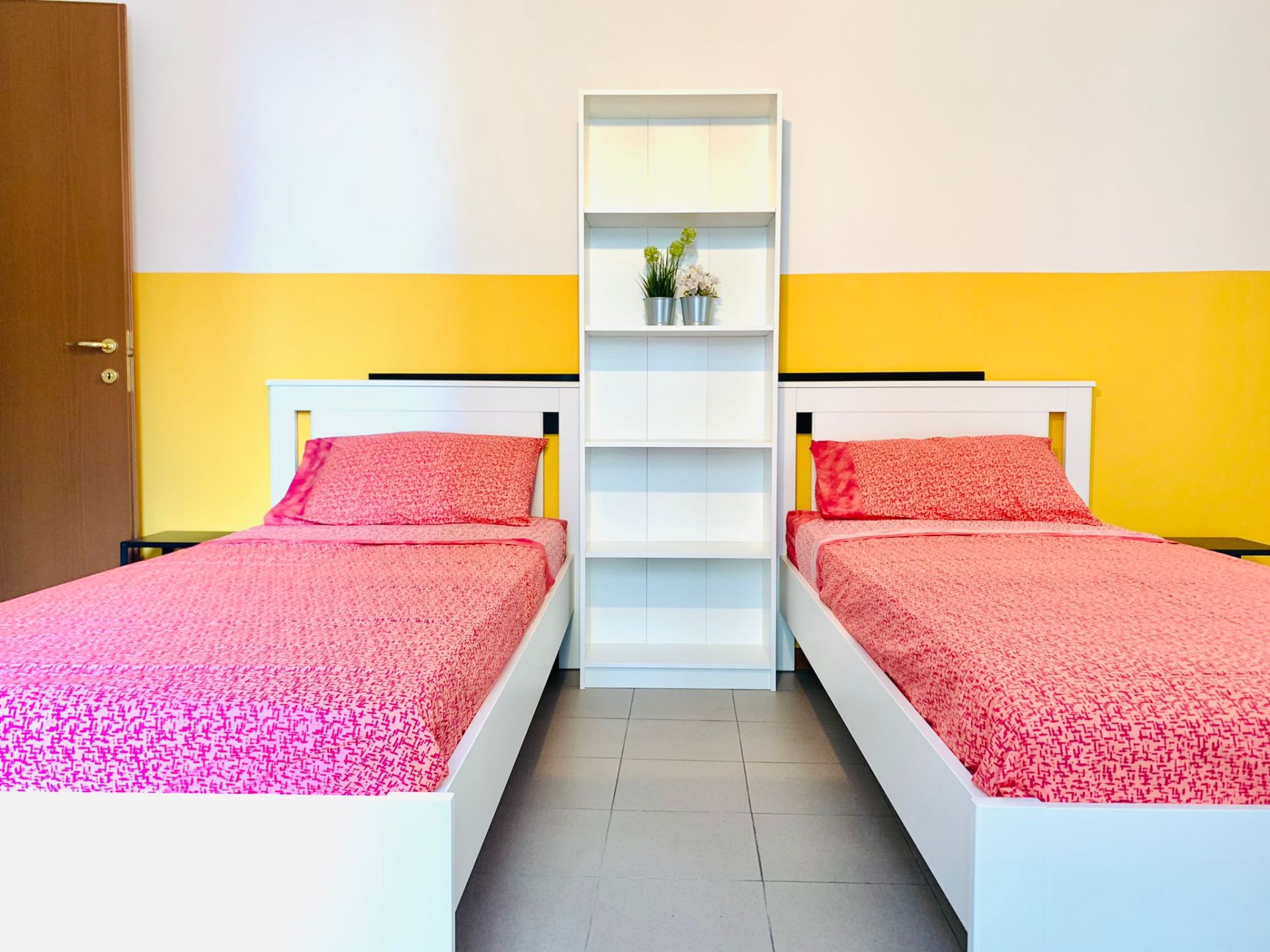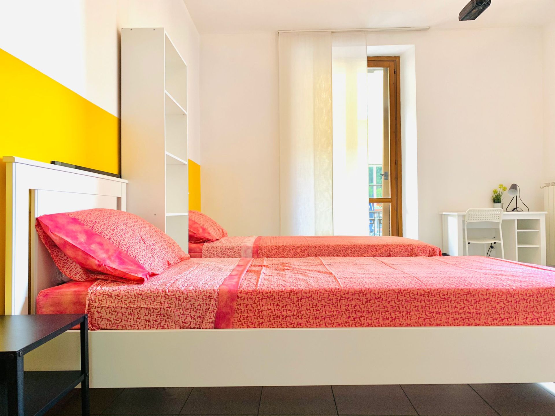 L’appartamento si trova in Via Andreoli 20, al primo piano di un contesto tranquillo, ed è composto da una spaziosa zona giorno con cucina attrezzata, perfetta per momenti di convivialità e studio, una camera singola e una camera doppia con due letti singoli, oltre a un bagno finestrato.