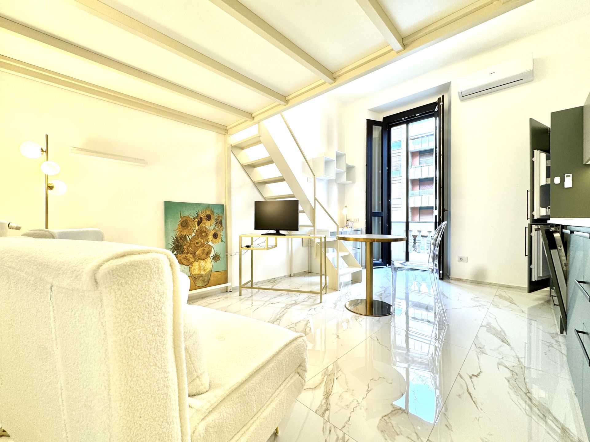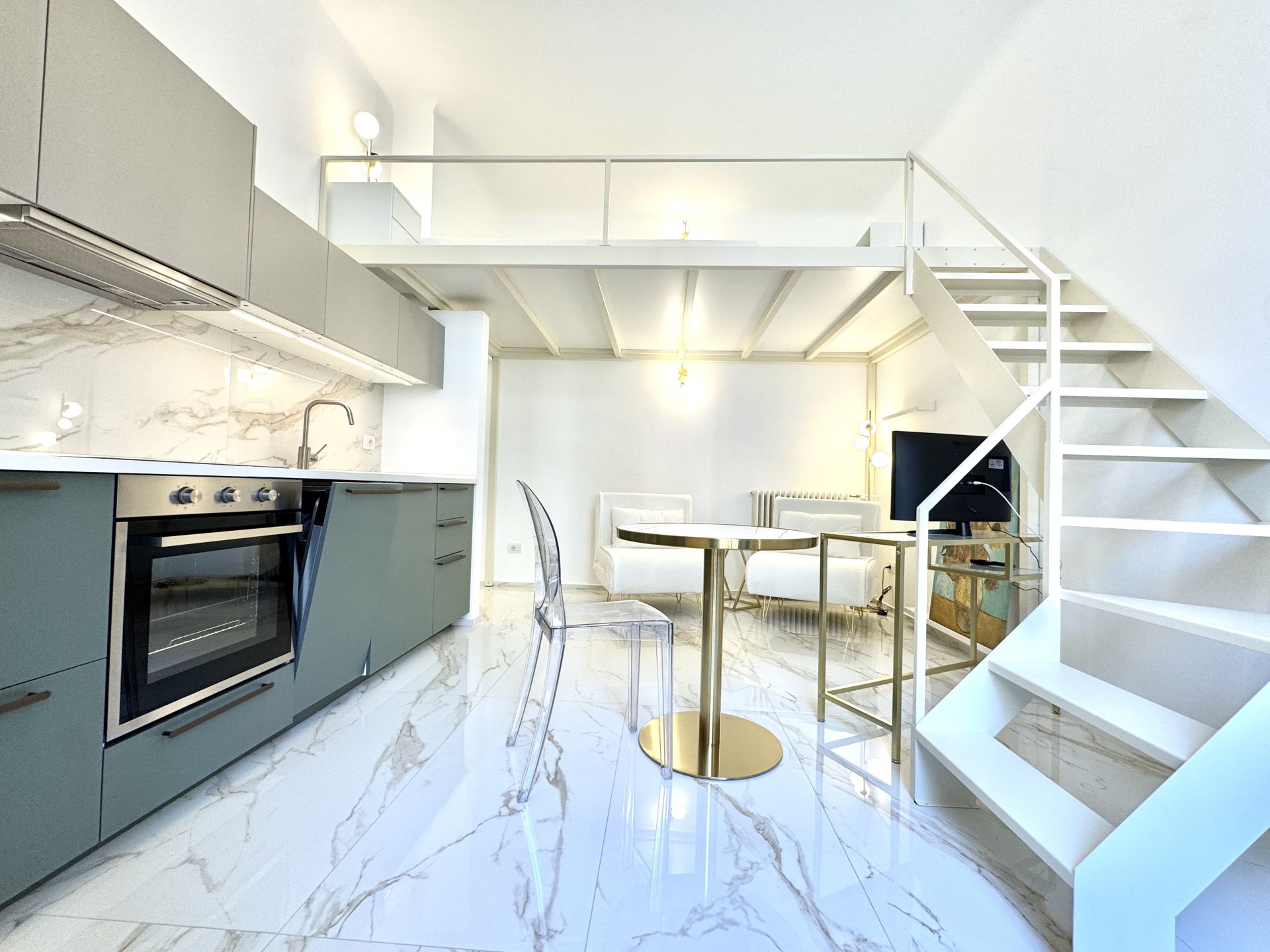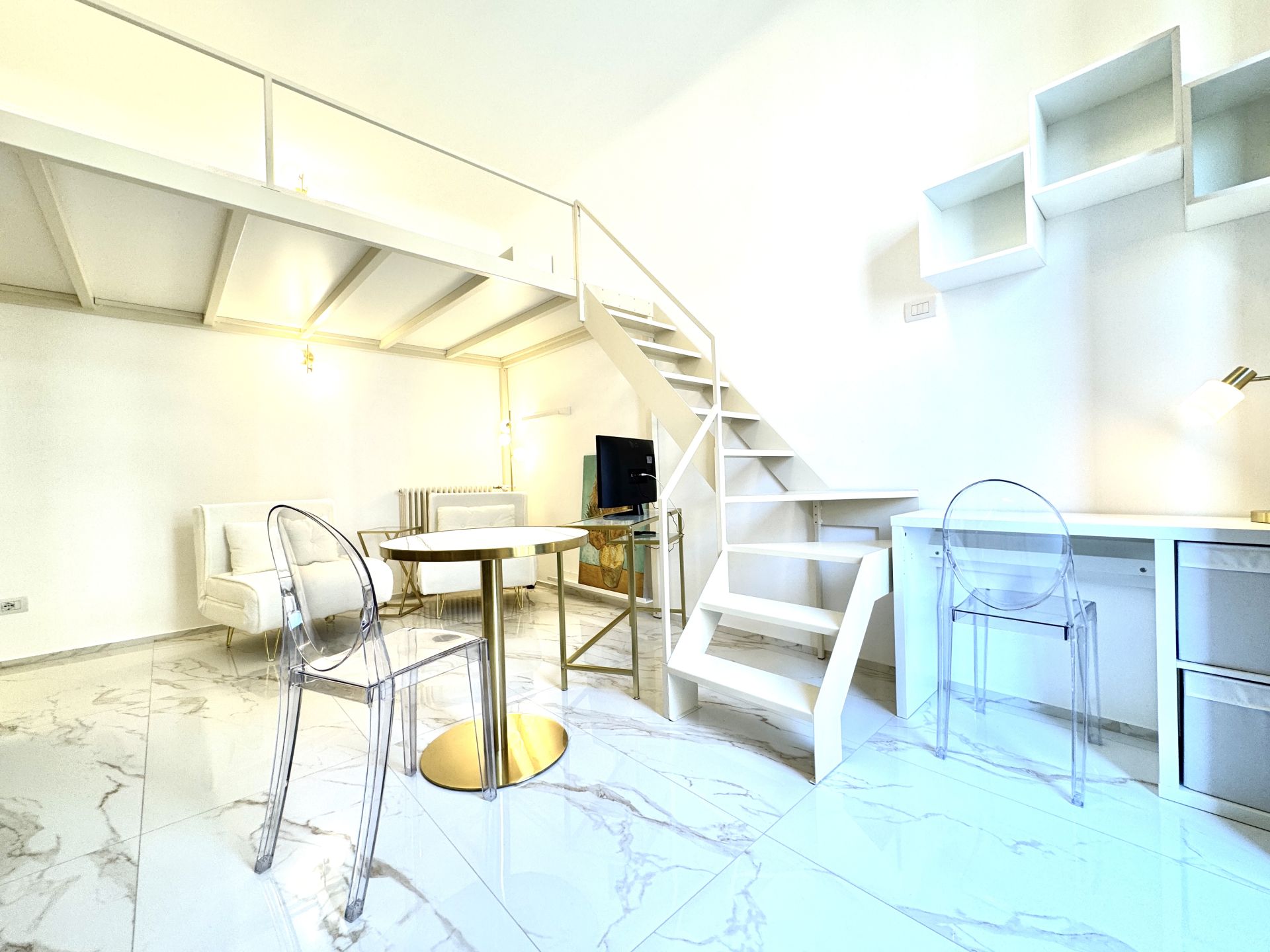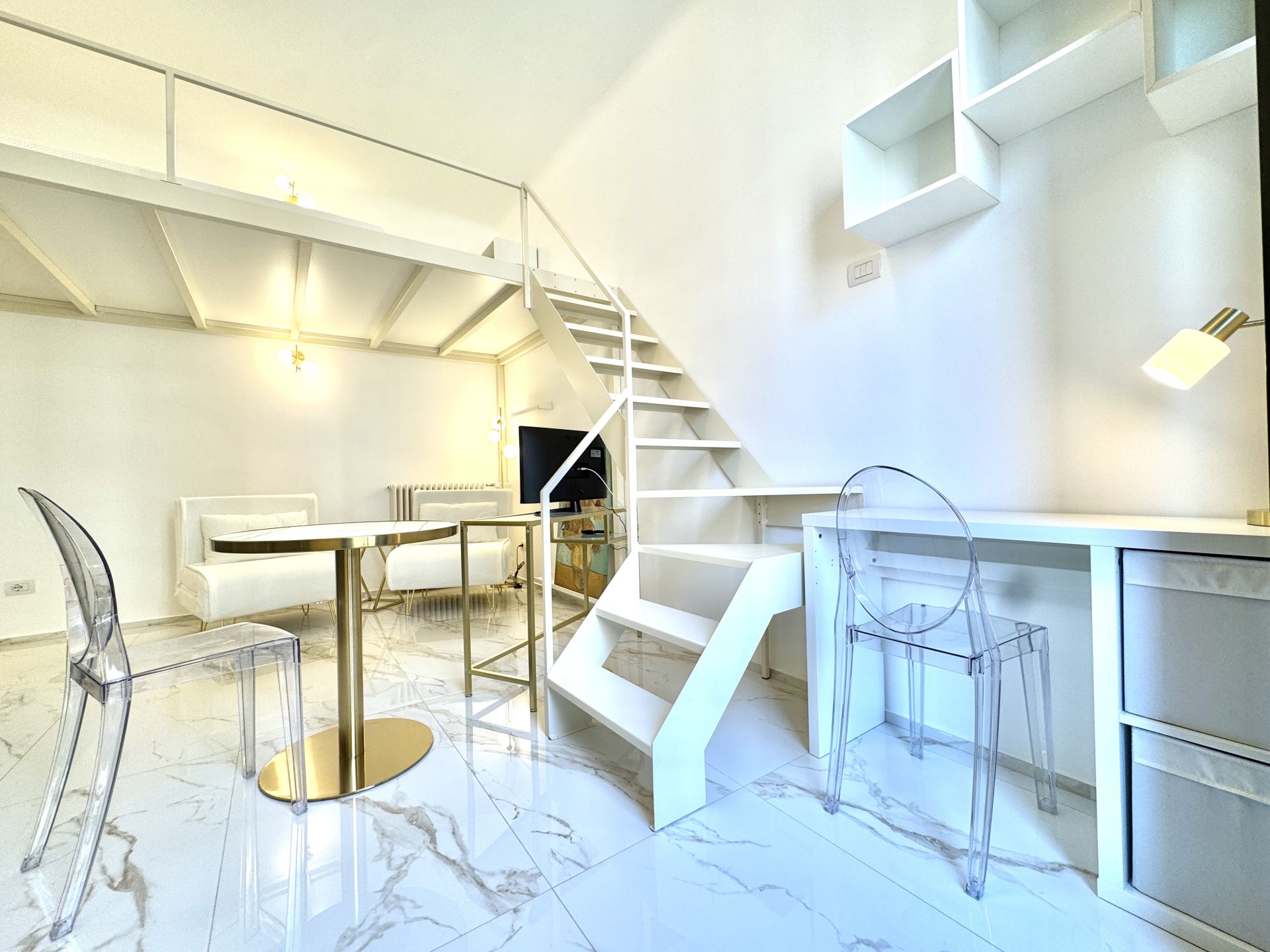 L’appartamento si trova all’interno di uno stabile signorile con servizio di portineria e si distingue per i suoi spazi ben distribuiti e una piacevole atmosfera contemporanea. La zona giorno è ampia e luminosa, con cucina a induzione perfettamente attrezzata, angolo relax e accesso a un balcone riservato. Una comoda zona notte soppalcata offre riservatezza e ottimizzazione degli spazi. Completa l'immobile un bagno spazioso, dotato di box doccia moderno e finiture di qualità.