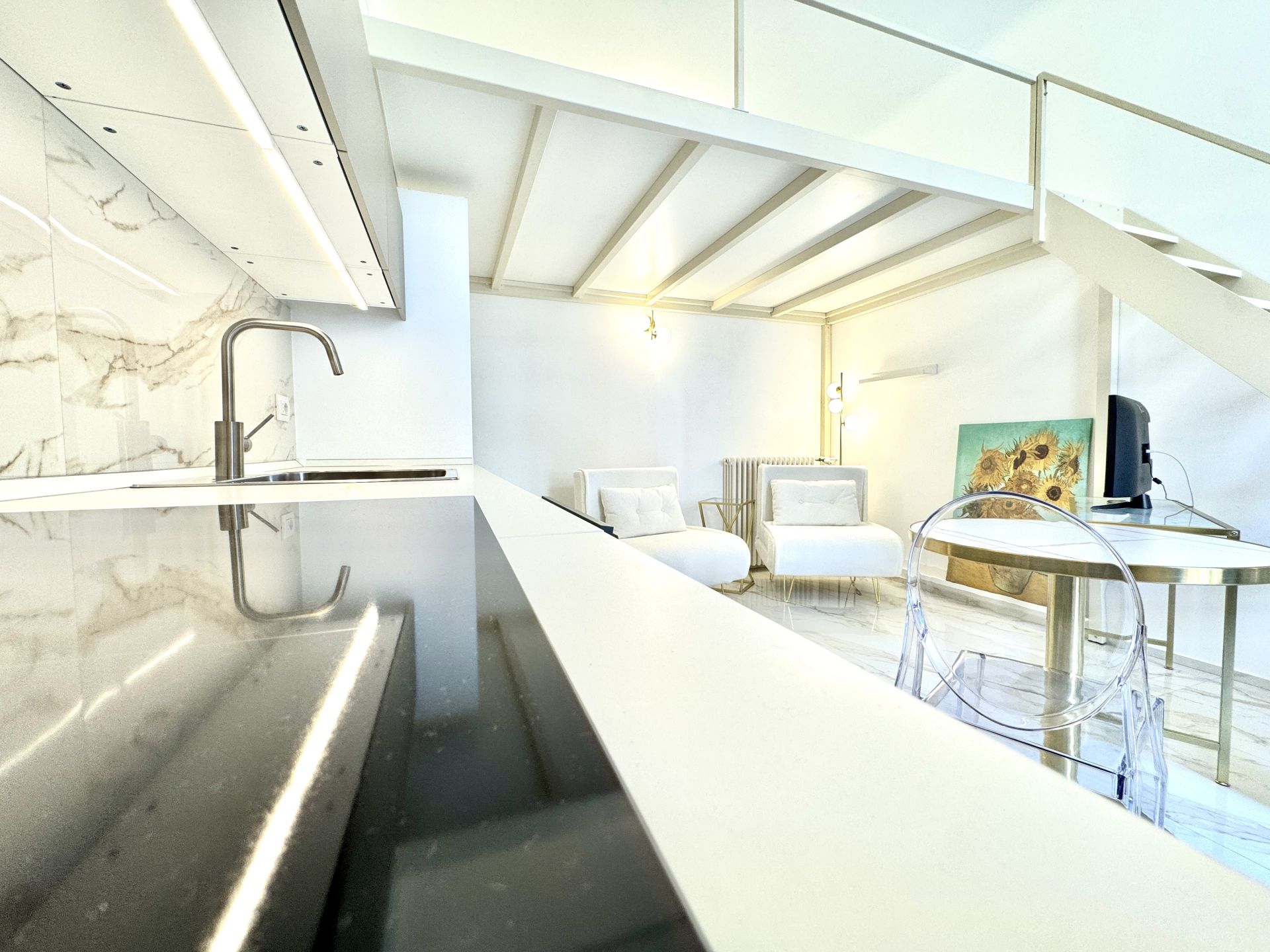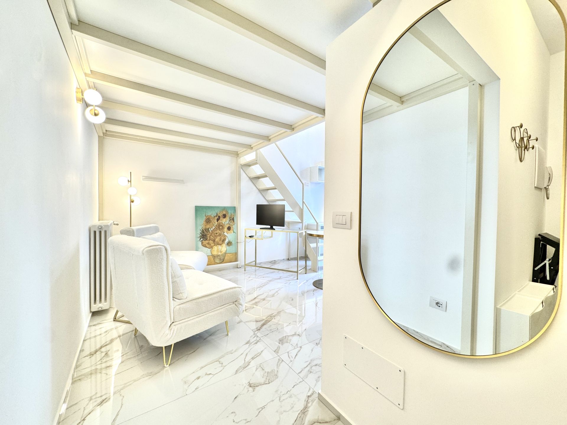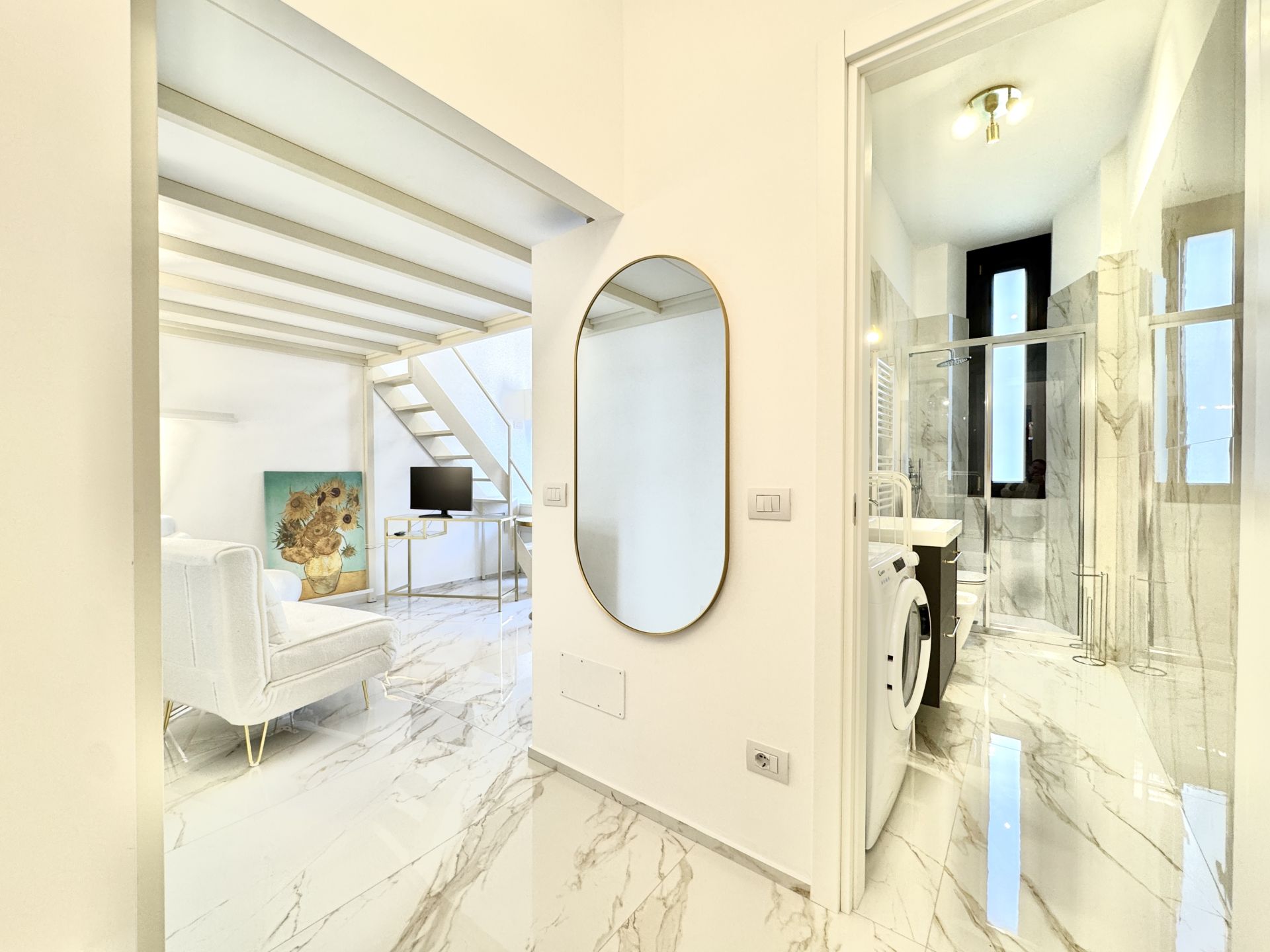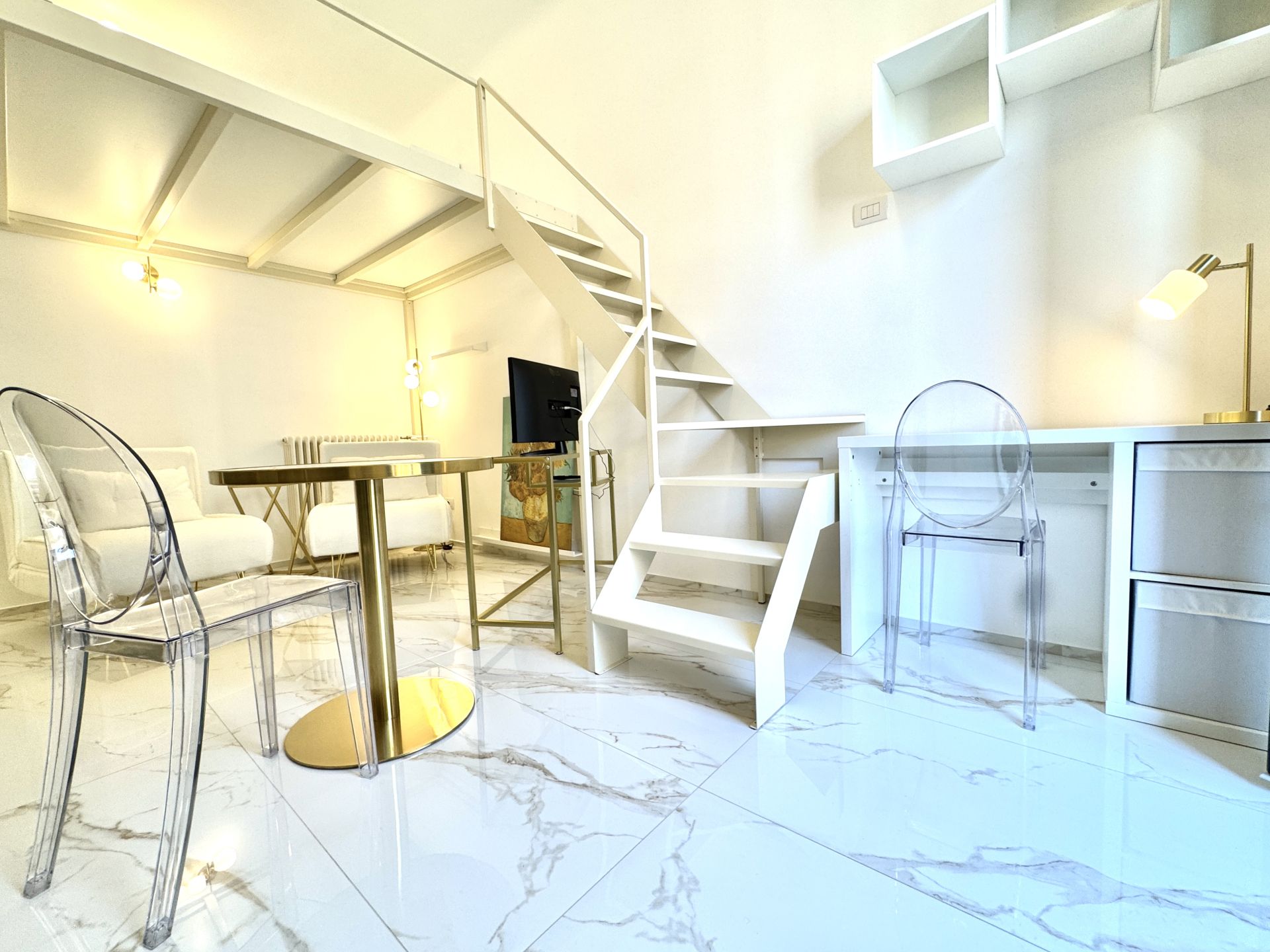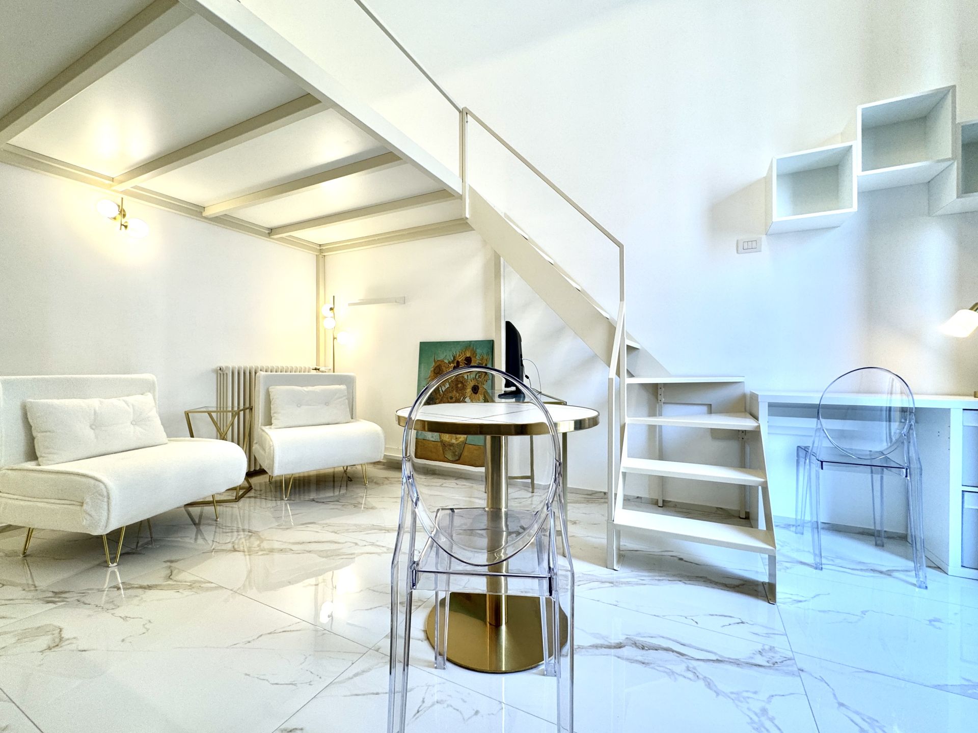 L’appartamento si trova all’interno di uno stabile signorile con servizio di portineria e si distingue per i suoi spazi ben distribuiti e una piacevole atmosfera contemporanea. La zona giorno è ampia e luminosa, con cucina a induzione perfettamente attrezzata, angolo relax e accesso a un balcone riservato. Una comoda zona notte soppalcata offre riservatezza e ottimizzazione degli spazi. Completa l'immobile un bagno spazioso, dotato di box doccia moderno e finiture di qualità.